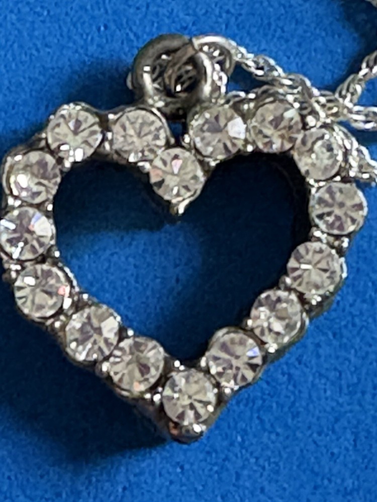 Add a touch of elegance to your outfit with this stunning RMN Roman crystal heart necklace. The 9 1/2" drop pendant is adorned with dazzling double-sided rhinestones, making it a versatile piece that can be worn on both sides. The brand name speaks for itself in terms of quality and style, making this necklace a must-have for any jewelry collection. Perfect for any occasion, this necklace is sure to make a statement.