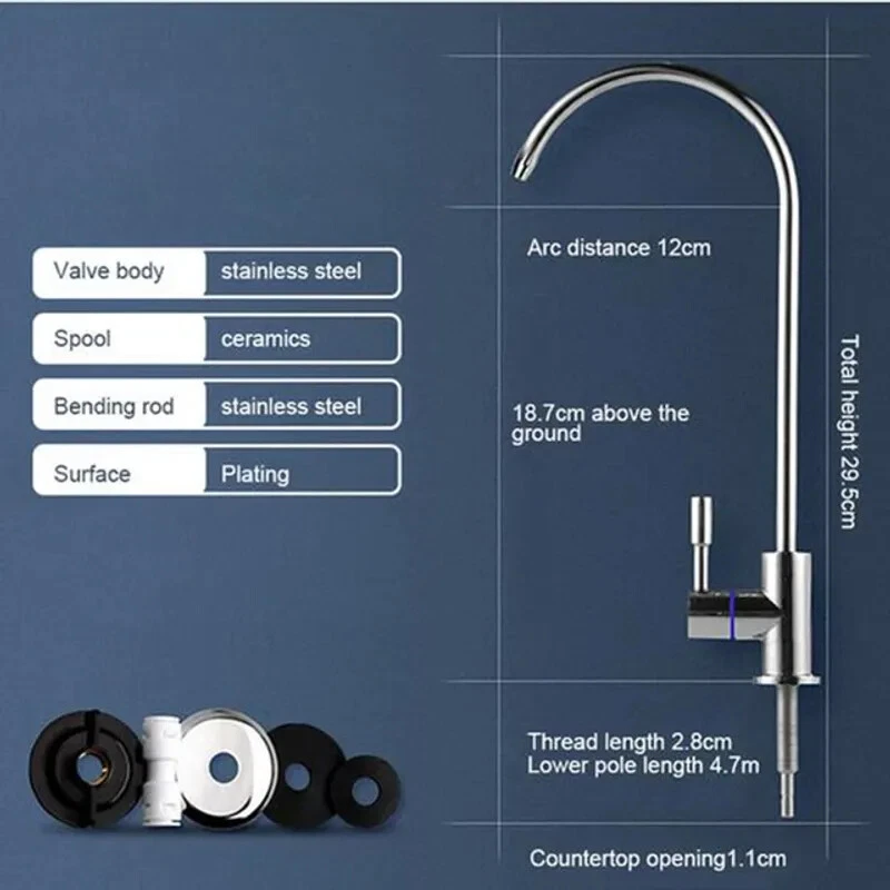 Water Filter Purifier Faucet, Lead-Free Filtered Faucet Fits Reverse Osmosis Units or Water Filtration System Kitchen RO Faucet Gallery Description Water Filter Purifier Faucet, Lead-Free Filtered Faucet Fits Reverse Osmosis Units or Water Filtration System Kitchen RO Faucet Product Introduction: The filter water faucet is made of lead-free as a whole,so the water dispenser faucet is unlikely to get rust, corrosion, and tarnishing during everyday use. the surface is scratch-resistant,oil-free,and easier to clean, ensuring both high-quality and longevity.Best choice for family healthy especially kids. The RO faucet inner wall is smooth and no rust occurred, no dirt, no secondary pollution. The durable ceramic disc creates a perfect sealing effect, drip-free and leak-free performance, thus achieves a good experience of drinking water. The products undergo strict inspections before they leave the factory. 90° Single Lever Handle & 360° Swivel Spout: 90 Degree single lever hand Package Includes: 1 x Drinking Water Filter Faucet 1 x 1/4"Quick Connector 1 x Cover Plate 1 x Rubber Ring 1 x Metal Washer Notification: 1. Please allow 1-2mm error due to manual measurement. Thank you for your understanding. 2. The monitor is not tuned in the same way. The color of the item shown in the photo may look slightly different from the actual object. Please refer to the real thing. Shipping Free Worldwide Shipping Payment Policy Safe and secure payement with PayPal! Return Policy 30 Days returns!