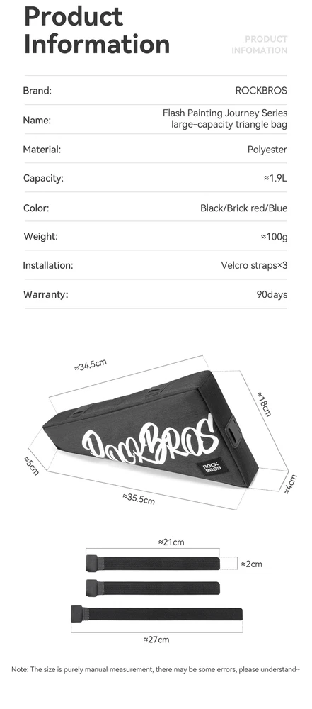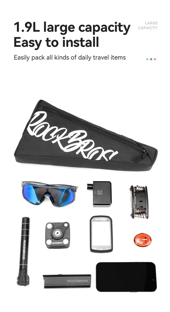 ROCKBROS Bicycle Triangle Bag 1.9L Bottom Tube Bag MTB Road Bike Front Frame Bag