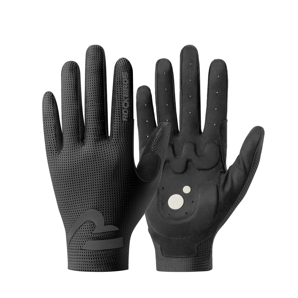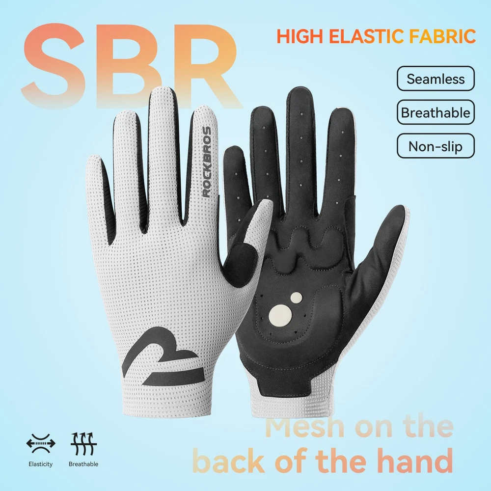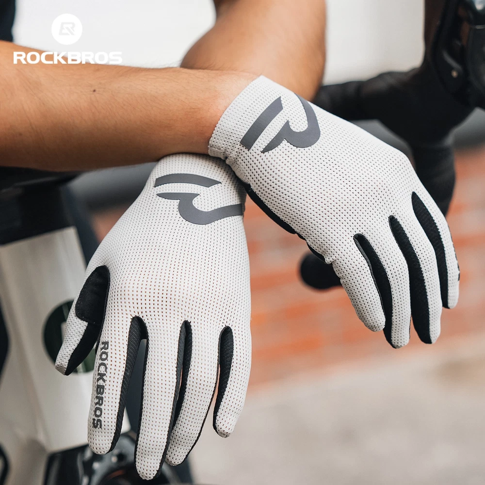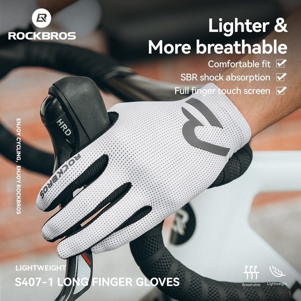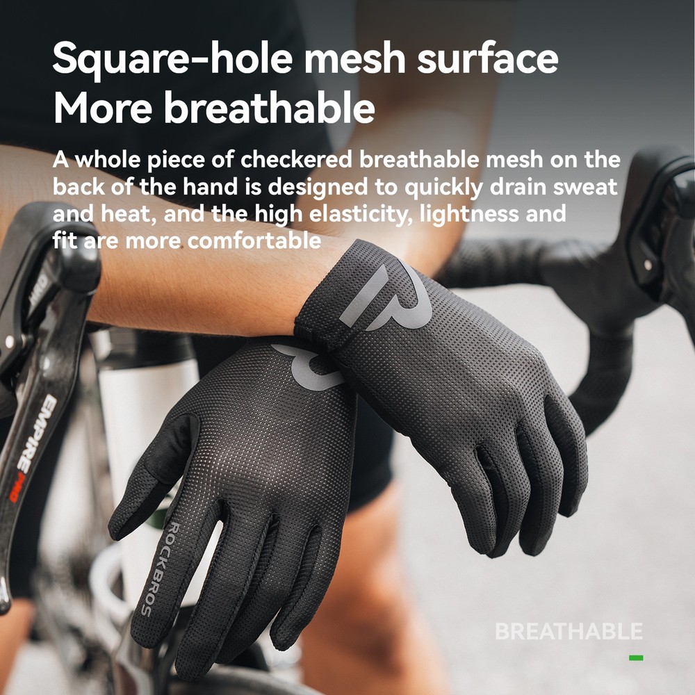 Brand:ROCKBROS Product Name:Cycling Gloves Product Number:16110017 Material:Palm: Hand back: 88% polyester +12% spandex;Palm: 90% polyester +10% spandex; Color:Black/White/Purple/Beige Size:S/M/L/XL/XXL Weight:≈30g±3g(M Size) Product Feature SBR filling,Wear-resistant/non-slip/shock absorption; Full finger sensitive touch screen,Easy to navigate/call; Finger vent hole,Heat dissipation; Seamless edging,Reduce friction; Reflective at night,Safety warning;