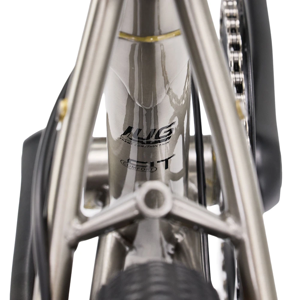 Gravis A legacy reimagined. Innovation at its core. Gravis is the perfect fusion of LUG's rich heritage and modern innovation. It combines the timeless elegance of LUG's classic craftsmanship with cutting-edge design and geometry, creating a folding bike that both honors tradition and leads the way into the future. While prioritizing lightweight and convenience, Gravis retains the warmth and depth of craftsmanship, allowing riders to still feel the elegant legacy of a century-old tradition. Origin LUG housing craft originated in Europe, with brands like Colnago, Bianchi, Cinelli, Pinarello, and De Rosa known for their LUG and steel frames, representing the peak of steel frame craftsmanship. In the U.S., Rivendell is famed for silver brazed LUGs and retro geometry. In Japan, TOEI, and in the UK, Mercian, are renowned for hand-carved LUGs and custom paint, making them highly coveted by collectors. Today, many brands are reviving these classic designs, solidifying LUGs as a symbol of high-end craftsmanship. LUG Housing Craft Compared to direct welding, the LUG housing process makes it easier to maintain consistency during frame production and allows for the use of lightweight steel tubes. LUG housing offers a larger contact area and precise angle control, making the frame connections more solid and reliable. LUG Craftsmanship: Where Tradition Meets Modern Design LUG craftsmanship blends tradition with modernity, elevating folding bicycles with its intricate design and artistic details. It preserves the elegance of classic steel frames while adding a timeless charm to urban cycling. 4130 High-Strength Steel Made from 4130 steel (C0.28-0.33%, Cr0.8-1.1%, Mo0.15-0.25%, balance Fe), this low-to-medium carbon chromium-molybdenum alloy offers excellent strength and toughness. After heat treatment, its yield strength reaches 560-700 MPa and tensile strength can go up to 700-900 MPa, combining high strength with great durability. Compared to aluminum alloys like 6061-T6 (tensile strength around 310 MPa), 4130 steel offers more stable performance under impact and fatigue loads. Its excellent weldability and machinability make it an ideal material for complex and precise frame structures, especially for high-end road and folding bike frames. Stopping Power: CNC Machined Aluminum Hydraulic Disc Brakes Precision-engineered for optimal performance, these CNC-machined aluminum hydraulic disc brakes offer superior stopping power and control. Built for durability and responsiveness, they ensure smooth braking even in demanding conditions, providing a safe and reliable riding experience.