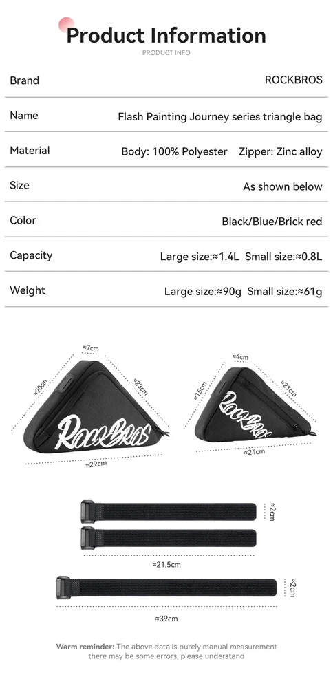 ROCKBROS MTB Road Bike Triangle Bag Ultralight Bicycle Front Tube Frame Bag