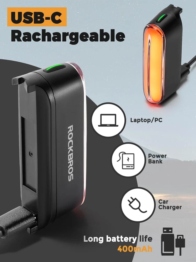 Product Features 1.Brake I Light sense Vibration sensing Windbreaker Magnetic Smart Tail Light 2.Dormant while resting Light sense self-starting 3.No fear of rain Life waterproof 4.Magnetic installation Stable and reliable 5.Smart light sense Windbreaker magnetic tail light 6.7 Lighting Modes / Brake Sensing / Day & Night Light Sensing / Smart Start & Stop