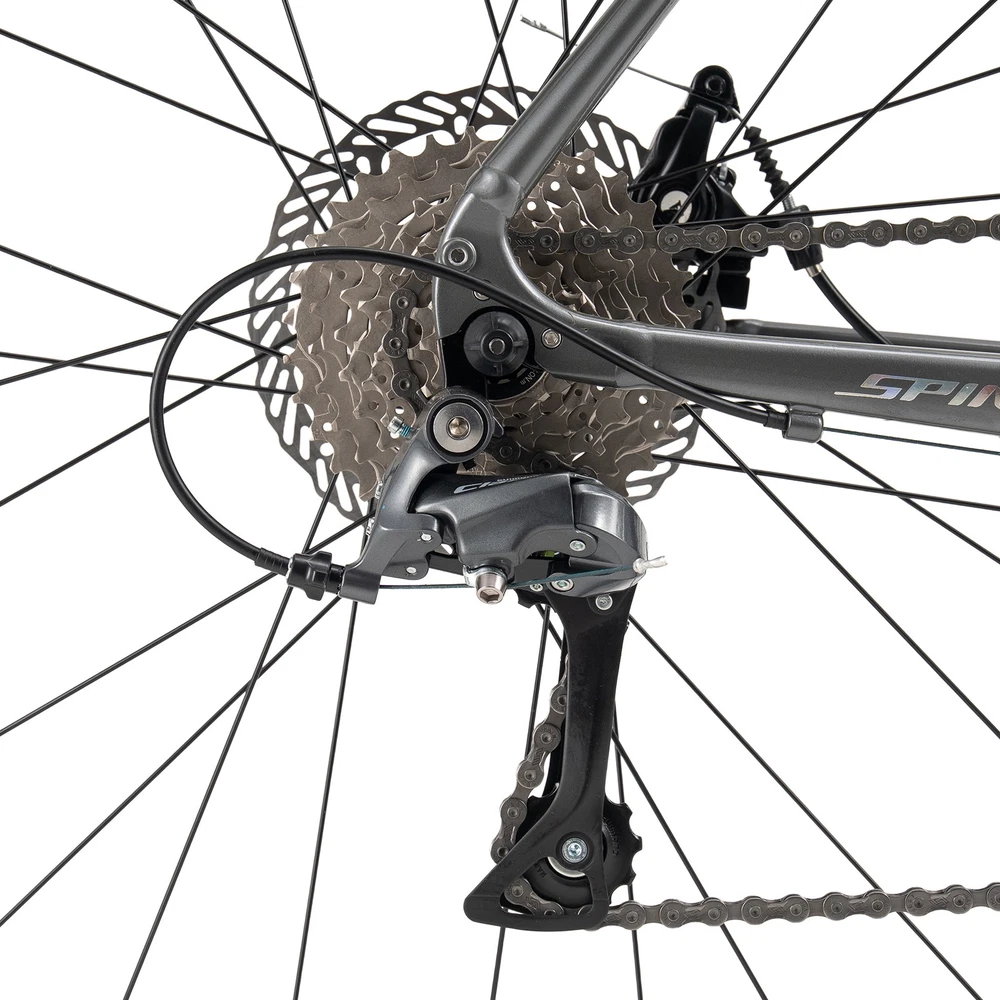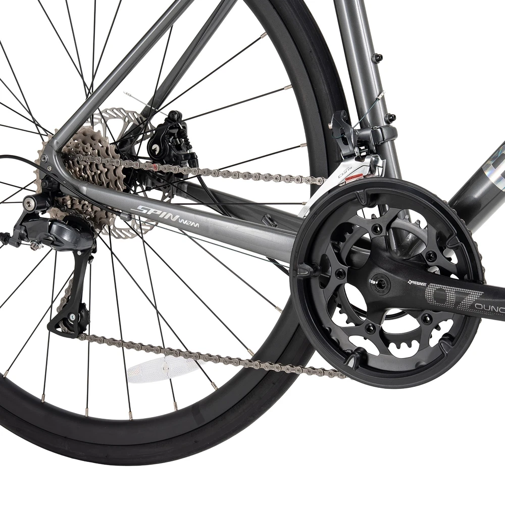 Lightweight Performance & Sleek Design Engineered with a premium aluminum alloy frame and matching fork, the Spin-W2M weighs only 11.27kg. Featuring internal cable routing, it offers a clean, professional aesthetic while protecting your cables from dust and coastal moisture—perfect for the Australian outdoors. Smooth Shimano Claris 16-Speed Drivetrain Equipped with a Shimano Claris R2000 2x8 drivetrain and an 11-32T cassette. Whether you’re tackling steep climbs in the hinterlands or sprinting on flat coastal paths, this system delivers precise shifting and reliable power transfer for every ride. All-Weather Safety & Control Ride with confidence regardless of the forecast. NUTT mechanical disc brakes provide superior stopping power on wet or muddy surfaces. Paired with puncture-resistant INNOVA 700x28C tires, you get a smoother, vibration-dampening ride with added grip and durability. Endurance Geometry for Long-Distance Comfort Designed for the long haul. The Endurance-focused geometry reduces upper body strain, minimizing fatigue in your back, neck, and shoulders. It’s the ideal setup for weekend grand fondos, fitness training, or high-speed daily commuting. Precision Fit for Every Rider Available in three sizes to ensure the perfect ergonomic posture for both teens and adults: Small (460mm): Fits 160–175 cm Medium (490mm): Fits 170–185 cm(This link is for size M) Large (520mm): Fits 175–190 cm Lightweight Aluminum Frame : Stable and durable, the aluminum alloy frame ensures easy climbing and acceleration with a light yet strong build. Shimano 16-Speed Shifting Kit : Effortlessly adapt to various road conditions with smooth and accurate gear shifts. Hidden Inner Wiring Design : Enhances the bike's sleek look, reduces wind resistance, and minimizes maintenance needs for a smooth ride. Wire Pull Double Disc Brakes : Provides sensitive and reliable braking for safe control on both flat city roads and rougher terrains. INNOVA 700x28C Stab-Proof Tires : Stab-resistant tires deliver balanced friction and resistance, offering a comfortable and efficient riding experience across different surfaces.
