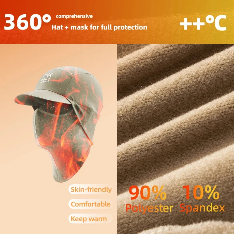 ROCKBROS Winter Cycling Mask Hat Fleece Thermal Ear Protection Outdoor Balaclava