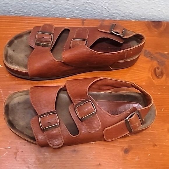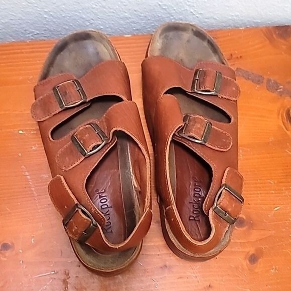 Rockport men's two straps slingback fisherman brown leather sandal upper leather CONDITIONS pre owned, gently used, good conditions. see photo for flaws details