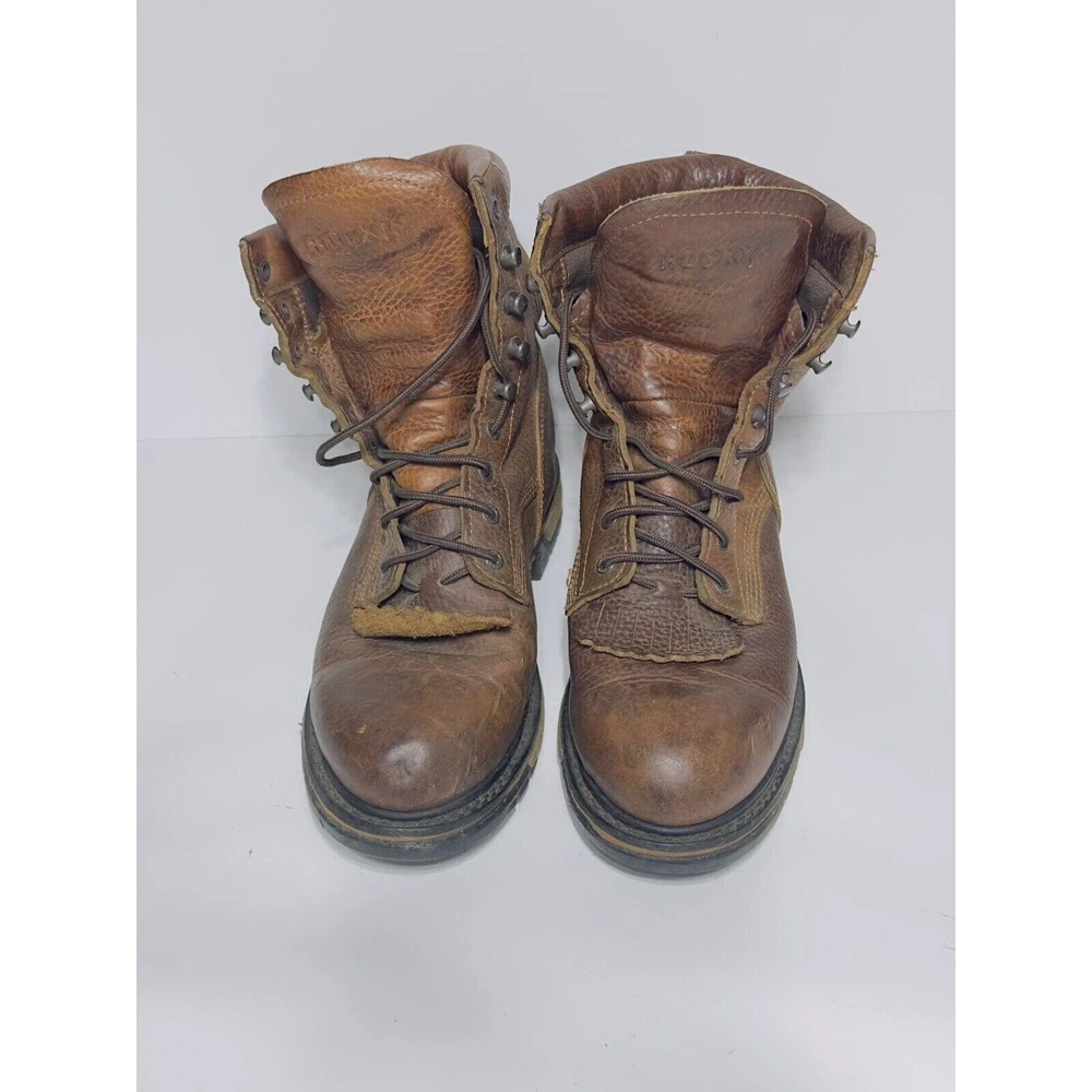 Get ready to ride with the Rocky Original Ride Lacer Waterproof Western Boots 2723! These men's boots are designed for the true cowboy in you, featuring a solid pattern and round toe shape. The lace-up closure allows for a snug and adjustable fit, while the waterproof leather material ensures your feet stay dry in any condition. With arch support, slip-resistant soles, and lightweight comfort, these boots are perfect for all-day wear. The TAN PITSTOP color and Western/Cowboy theme add a touch of rugged style to any outfit. Available in size 8.5, these Rocky boots are sure to become your go-to footwear for any adventure.