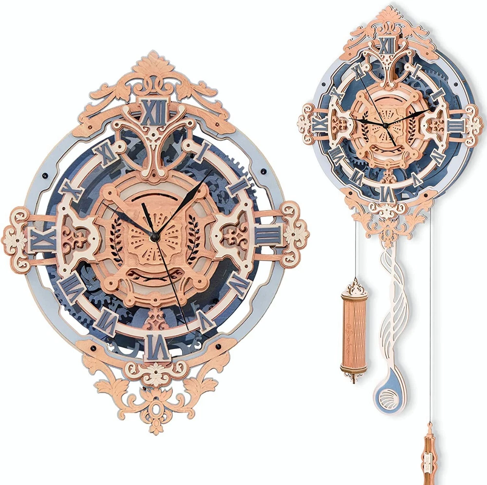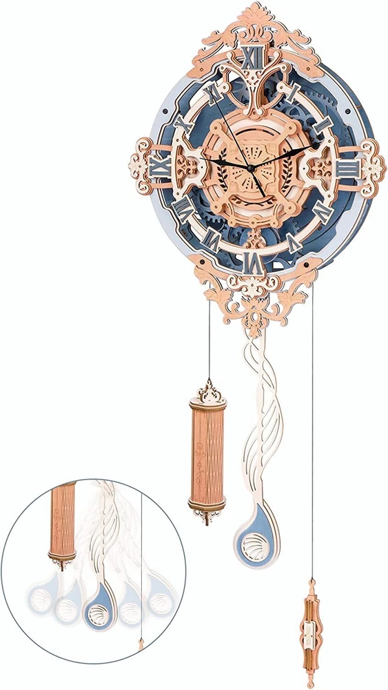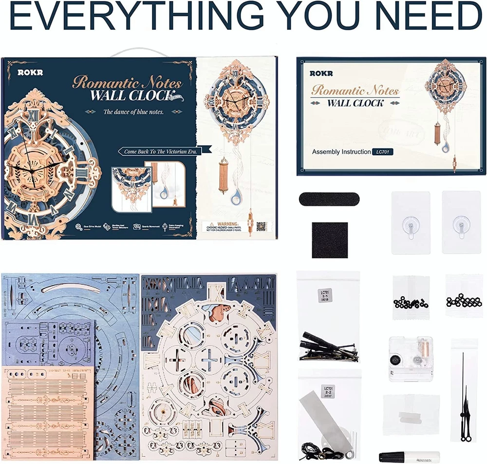 ROKR 3D Puzzle Wall Quartz Clock Wooden Gift For Kids Adults Mechanical Design Product Description: ROKR 3D Puzzles for Adults Vintage Wooden Pendulum Clock Kits 12" Mechanical Building Model Kits DIY Wall Clock Hobbies for Adults Home Decor Gifts for Teens Characteristics : Product Name:Owl Clock Wooden 3D Puzzle Brand: ROKR Theme: Pendulum Clock Material: Wood The Number of Pieces: 231 pcs Age: 14+ Finished Size: 11.73 x 4.21 x 25.35 inch ROKR Romantic Note· Wall Clock is a mechanical 3D puzzle clock combined with decorative charm and pratical functions. It restores vintage charm with music note-shaped pendulum and stylish clock dial. Once completed, it will be pleasure to eyes. Perfect gift for boys and girls, dad and mom. Engaging Model Kits for Teens/Adults Putting a mechanism together is both challenging and rewarding. Hours of carefree aseembling withwith family and kids, you will savor the sense of fulfillment once it's finished . Pieces: 231 pcs Estimate Time: 5.5 h Assembled Size: 11.5x4x25 in Power: Gravity/AA Battery (not included) Vintage Pendulum Clock The model kits adopts classic pendulum structure with escapement wheel and escapement fork. You need to add weights in the heavy bob before the pendulum can swing (up to 4 hours). Although the pendulum is only decorative instead of telling time, its swings restore the charm of vintage clock. Creative Gift for boys, girls, mom, dad, husband, wife Stunning Decor for bedroom, living room, office Hobby Craft Kits for adults, teems, DIY lovers Everythign You Need The package includes every accessories your need: Wood sheets English instruction Clock movement (battery not included) Hook set Sand paper Step-by-step Instruction Every step is shown in illustrations. Very easy to follow. If you have any assembly question, feel free to tell us. Slient Quartz Movement Quartz Movement is accuatre and sient, which make the model a practical time indicator. (Battery is not included due to international shipping policy.) Package includes: 1 x 3D Wooden Puzzle Note: 1.Small parts should be kept away from children under 3 years old to prevent accidental ingestion, be careful of sharp parts! 2.If you have any questions about our products, please feel free to contact us, our customer service will help you solve the problem as soon as possible, thank you for your understanding.