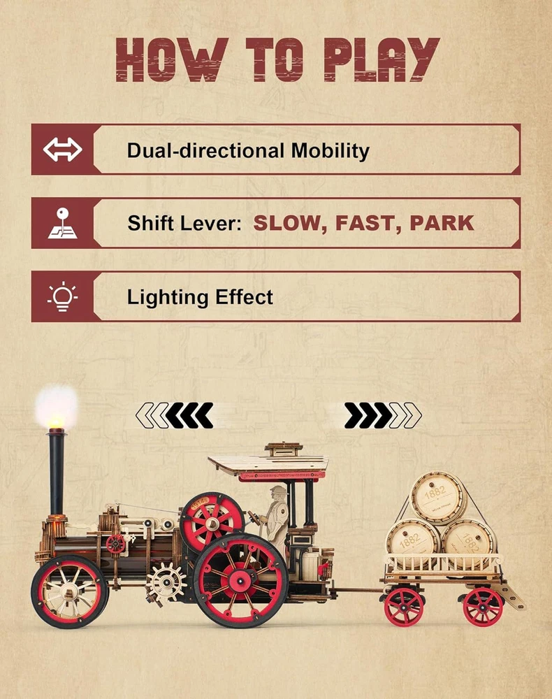 Store Categories Store Categories Other ROKR 3D Wooden Puzzle Steam Engine Mechanical Teens Birthday Gift LKA01 Product Description ABOUT ROKR: ROKR is dedicated to providing creative and interesting wooden assembly toys. Our wooden mechanical model kits are inspired by the real world, and are designed by expert mechanical engineers. T he se imaginative self-propelled wooen mechanical model kits are easily assembled without additional tools or glue. ABOUT THIS ITE M : 🎁 [2 Directions & 3 Gears] Press to start, travel Forward/Backward, three speed control (Slow/Fast/Stop). Gear mechanical transmission, experience scientific fun! 🎁 [IDEAL GIFT] Our 3D jigsaw puzzle is a unique and perfect gift for adults and boys, it brings seven hours of pleasure to assemble. 🎁 [Give Life Fun] When you see the completed adult wooden jigsaw puzzle, you will not only feel proud of your patience and intelligence, but also feel that life is full of fun. 🎁 [Age of Steam] The classic 19th century steam engine starts up and the LED lights simulate the flames of burning coal in the boiler chamber as if it were the dawn of a new century. 🎁 [QUALITY & SERVICE] Each part is laser cut from high quality wood (environmentally friendly), and clear instructions ensure smooth assembly for you. Our attentive after-sales service is always available to answer your questions. (Please prepare two AAA/LR03/AM4 1.5V batteries) Product Details: Size: Package includes: Payment Policy Shipping Policy Returns Policy Payment Policy 1 . Please contact us anytime if you have any questions on payment. 2 . Payment must be made within 48hrs of the auction end time. Shipping Policy 1. We ship to your eBay address Only,Please check your shipping address carefully before checkout, it can't be changed once order completed. 2. Shipping within 1 business days once payment completed. Orders placed on weekend will be shipped within 3 days. Returns Policy 1.Refund or replacement request is available only the requests within 30days after parcel received & returning the item as the same condition as received. 2.Please contact us to request a return authorization. Your name, auction number, and reason for return should be included in the email. All items returned must contain all original packaging materials. Copyright © 2023 Dianxiaomi