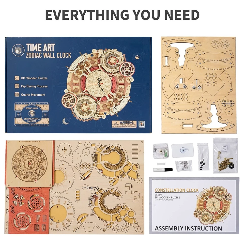 Store Categories Store Categories 3D WOODEN PUZZLE DIY MINIATURE HOUSE DIY BOOK NOOK KIDS PETS NEW ARRIVALS Other ROKR 3D Wooden Puzzle Zodiac Clock Toy DIY Mechanical Model Kits Kids Gifts Product Description Abount ROKR ROKR is dedicated to providing creative and interesting wooden assembly toys.Our wooden mechanical model kits are inspired by the real world, and are designed by expert mechanical engineers. These imaginative self-propelled wooden mechanical model kits are easily assembled without additional tools or glue. Product Detail Brand:ROKR Puzzle Type:Jigsaw,3D Puzzle,Building Toys Color:Multi-colour Theme: Zodiac Wall Clock Number of Pieces:168 Pieces Manufacturer recommended age:14 years and up Department:Unisex Adult Item Dimensions: 35.6 x 29.5 x 5.5 cm Item Weight:1150 g 【Wooden Puzzle】When DIY model completed, it can be used like an ordinary wall clock and keep accurate time. adjust the parts of month, date and week to the correct place, you can hear the crack of the gears when you turning the parts, bring you a mechanical and steampunk style time travel. 【Puzzle Design】It is quieter than similar clocks. Adopting a sweeping stopwatch, so that the pointer runs continuously, and reducing the mechanical noise. 【Puzzle Decor】It comes with nails and a hook. You can simply hang it to any wall. The stylish roman numerals and carvings make it beautiful decor. Great solution for empty wall space or gallery wall accent. 【Great Choice】This 3D puzzle kit is perfect gifting idea for for friends, family, teachers, bosses and colleagues on only occasion. Children's birthday, Christmas, friends' event, new office opening, especially as a housewarming gift for their new home. Package Include: 1* 3D wooden puzzle 1* English instruction sheet Payment Policy Shipping Policy Returns Policy Payment Policy 1 . Please contact us anytime if you have any questions on payment. 2 . Payment must be made within 48hrs of the auction end time. Shipping Policy 1. We ship to your eBay address Only,Please check your shipping address carefully before checkout, it can't be changed once order completed. 2. Shipping within 1 business days once payment completed. Orders placed on weekend will be shipped within 3 days. Returns Policy 1.Refund or replacement request is available only the requests within 30days after parcel received & returning the item as the same condition as received. 2.Please contact us to request a return authorization. Your name, auction number, and reason for return should be included in the email. All items returned must contain all original packaging materials.