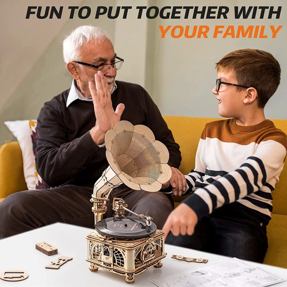 Store Categories Store Categories 3D WOODEN PUZZLE DIY MINIATURE HOUSE DIY BOOK NOOK KIDS PETS NEW ARRIVALS Other ROKR DIY Vintage Gramophone 3D Wooden Puzzles DIY Building Toys Gifts Home Decor Product Description Abount ROKR ROKR is dedicated to providing creative and interesting wooden assembly toys.Our wooden mechanical model kits are inspired by the real world, and are designed by expert mechanical engineers. These imaginative self-propelled wooden mechanical model kits are easily assembled without additional tools or glue. Product Detail Brand:ROKR Puzzle Type:Jigsaw,3D Puzzle,Building Toys Color:Wood Color Theme:Gramophone Number of Pieces:424 Pieces Manufacturer recommended age:14 years and up Department:Unisex Adult Item Dimensions:22.6 x 26.1x 42.9 cm Item Weight:1780 g 【 Wooden Puzzle 】 Comes with cutting technology , no burrs, smooth wooden sheets. It supports 7" and 10" diameter vinyl records. As you crank up the gramophone after assembly, watch as the intricate inner gears kickstart into charming motion. 【 Puzzle Function 】 No battery needed. Crank the handle, then music plays. The centrifugal governor as the core technology guarantees a balanced playback speed regardless of the hand cranking force and speed. 【 Puzzle Instruction 】 The instructions are in English with pictures to aid in the construction, everything in the kit is clearly marked and labeled so that assembly is as enjoyable as possible. 【 Great Choice 】 Create unforgettable times of working together on projects between you and your kids. A super awesome bond, great family ties. Wonderful gifts for Adults, Teens, family, friends or yourself at any occasions like birthday or anniversary. Package Include: 1* 3D wooden puzzle 1* English instruction sheet Payment Policy Shipping Policy Returns Policy Payment Policy 1 . Please contact us anytime if you have any questions on payment. 2 . Payment must be made within 48hrs of the auction end time. Shipping Policy 1. We ship to your eBay address Only,Please check your shipping address carefully before checkout, it can't be changed once order completed. 2. Shipping within 1 business days once payment completed. Orders placed on weekend will be shipped within 3 days. Returns Policy 1.Refund or replacement request is available only the requests within 30days after parcel received & returning the item as the same condition as received. 2.Please contact us to request a return authorization. Your name, auction number, and reason for return should be included in the email. All items returned must contain all original packaging materials.