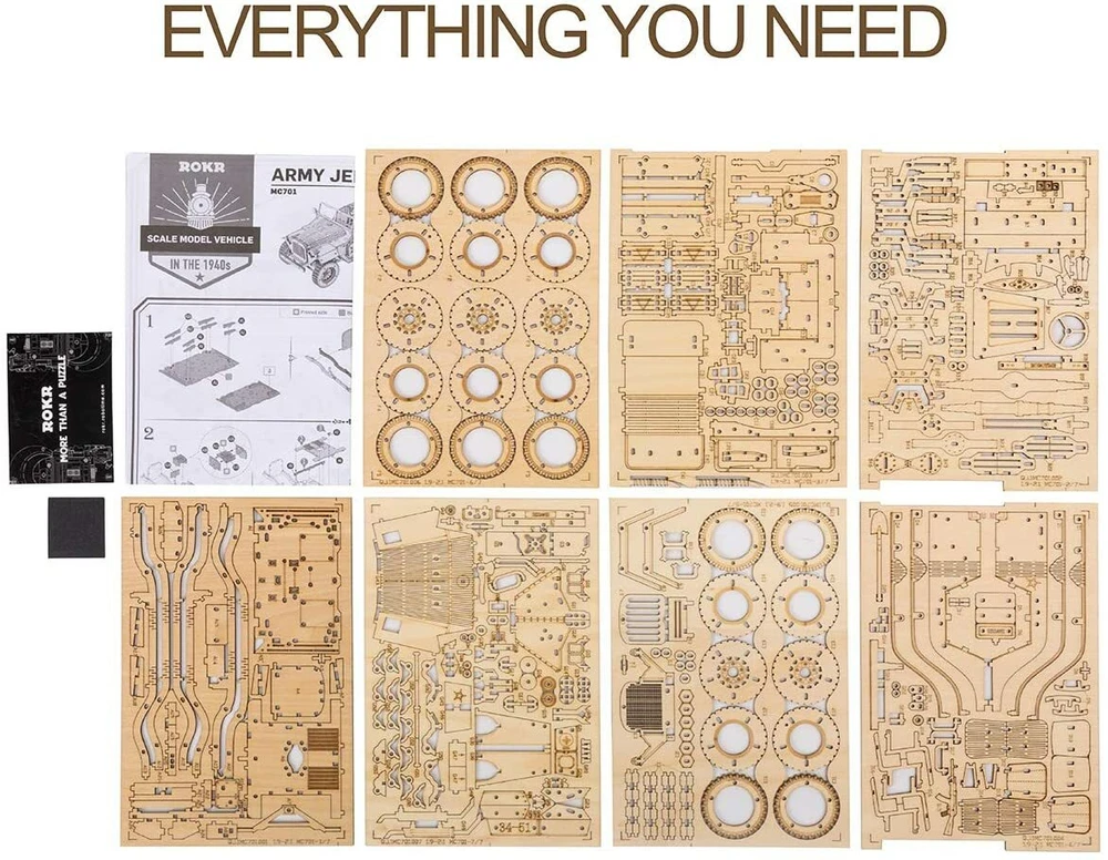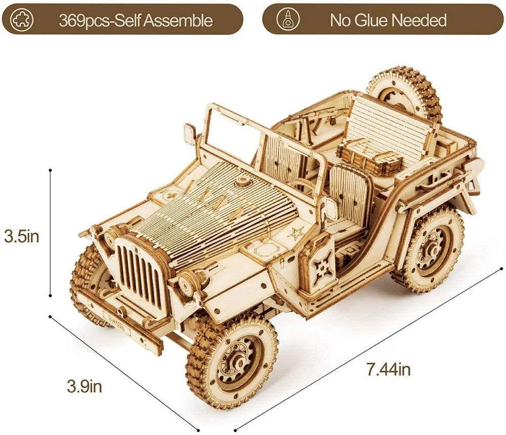 Store Categories Store Categories 3D WOODEN PUZZLE DIY MINIATURE HOUSE DIY BOOK NOOK KIDS PETS NEW ARRIVALS Other ROKR Mechanical 3D Wooden Puzzle for Adult DIY Building Toy Army Jeep Xmas Gift Product Description Abount ROKR ROKR is dedicated to providing creative and interesting wooden assembly toys.Our wooden mechanical model kits are inspired by the real world, and are designed by expert mechanical engineers. These imaginative self-propelled wooden mechanical model kits are easily assembled without additional tools or glue. Product Detail Brand:ROKR Puzzle type:Jigsaw,3D Puzzle,Building Toys Color:Wood Color Theme:Army Field Car Number of Pieces:369 Pieces Manufacturer recommended age:14 years and up Department:Unisex Adult Item Dimensions:18.9 x 9.9 x 8.9 cm Item Weight:200 g 【Wooden Puzzle】In 1940s, industry development in the context of war, army field car merges as the times require. Replicated into mini scale model with detailed structures, fun projuect for hobbyists. 【Puzzle Material】This wooden model kit adopts scientific laser cutting technology. The board has no burrs and does not hurt hands. Safe materials and strictest quality control. You will get a good construction experience. 【Puzzle Instruction】You can follow our Detailed Instructions to assemble it step by step, no glue needed, Just need patience, after 2-4 hours, you will get an unique car model. 【Great Choice】This is an amazing gift for any occasion. At Christmas, new year, birthday, Valentine's day as a gift to adults and kids, boyfriend, son, father, ect. In addition, it can be used as a family decoration, in the study, on the desk. Package Include: 1* 3D wooden puzzle 1* English instruction sheet Payment Policy Shipping Policy Returns Policy Payment Policy 1 . Please contact us anytime if you have any questions on payment. 2 . Payment must be made within 48hrs of the auction end time. Shipping Policy 1. We ship to your eBay address Only,Please check your shipping address carefully before checkout, it can't be changed once order completed. 2. Shipping within 1 business days once payment completed. Orders placed on weekend will be shipped within 3 days. Returns Policy 1.Refund or replacement request is available only the requests within 30days after parcel received & returning the item as the same condition as received. 2.Please contact us to request a return authorization. Your name, auction number, and reason for return should be included in the email. All items returned must contain all original packaging materials.