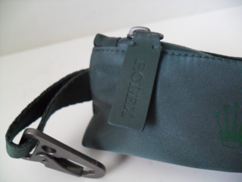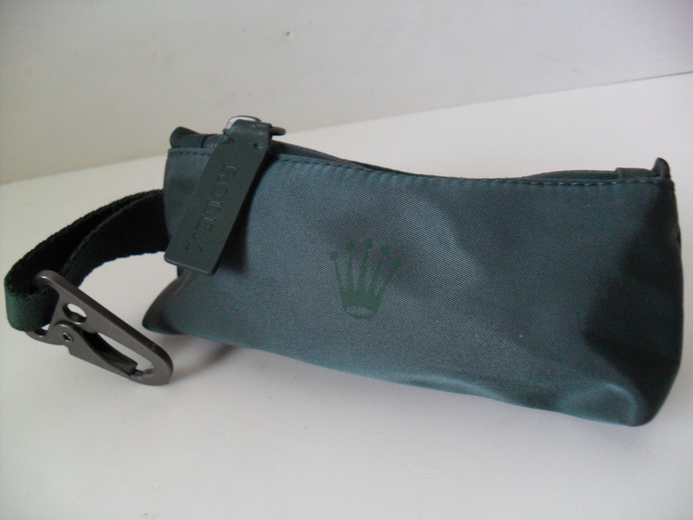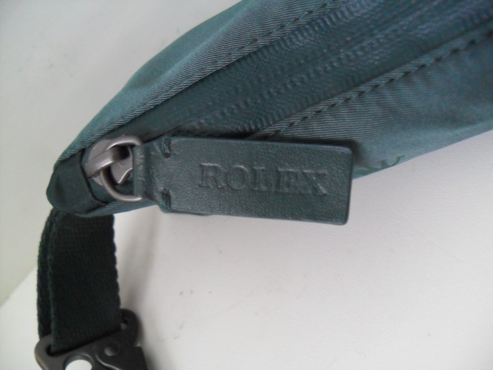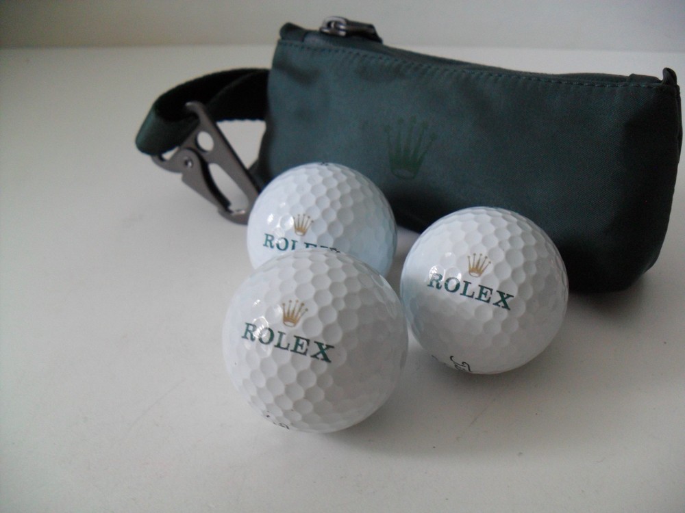This is a Beautiful Rolex Golf Ball Accessories Pouch PLUS 3 Rolex Titleist Pro V1 Golf Balls and ROLEX Ball Marker With Hat Clip. Brand New - Entire Set Never Used - Excellent Condition The Iconic Rolex "Crown" and is Featured on the Front of the Pouch. The Block Letter "ROLEX" Logo is Embossed into the Leather Zipper Pull. Pouch is Made of Tear and Stain Resistant Water Resistant Nylon/Polyester. Pouch Features Water Seal Zipper Closure. Pouch Features Gun Metal Stainless Steel Spring Bag Hook. Pouch Holds 3 Golf Balls Plus Additonal Small Accesorries (Ball Markers, Tees, etc...). Pouch Measures 5.5" X 3". T he Stainless Steel Ball Marker (with hat Clip) Features the Rolex "Crown" and Block Letter "ROLEX" Logos. Includes 3 Titleist Pro V1 x ROLEX Golf Balls Non-Smoking Home.