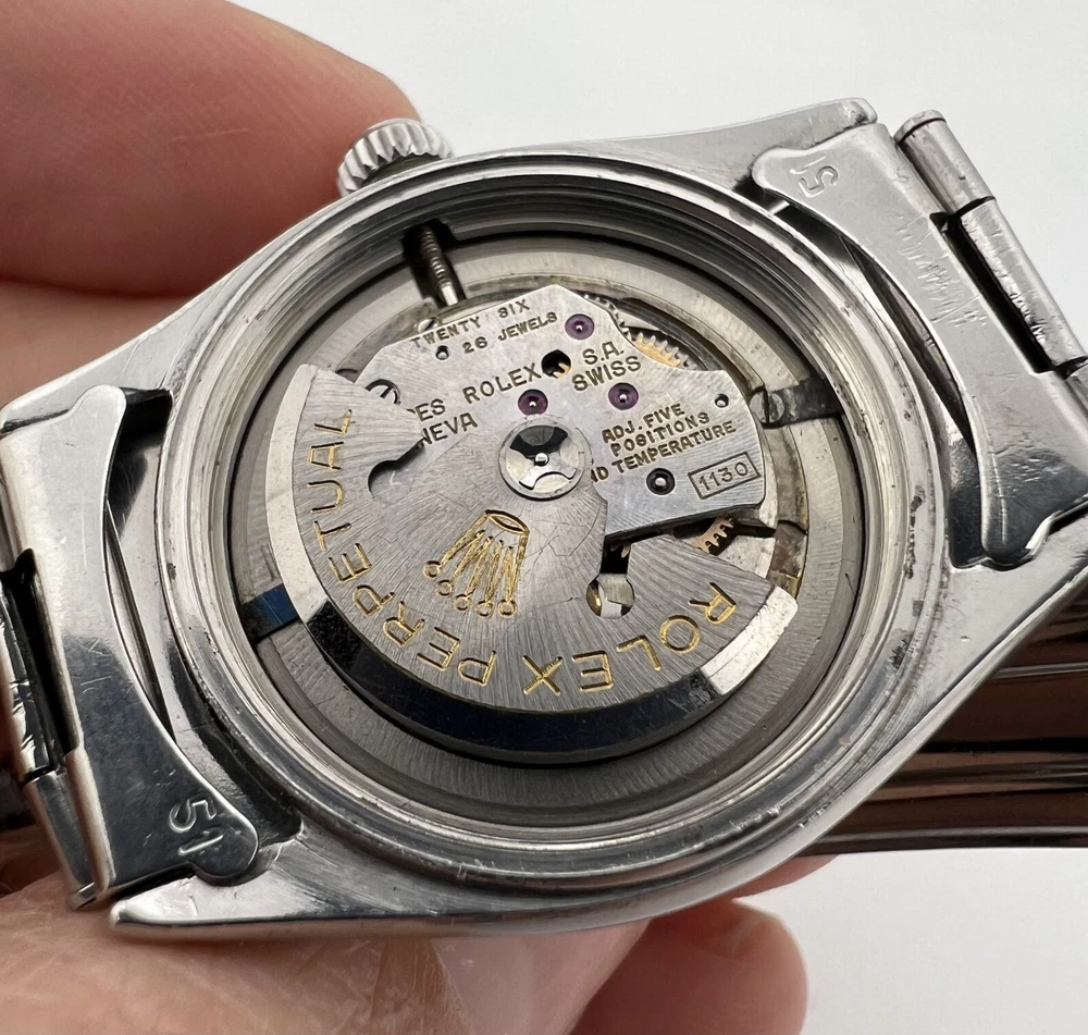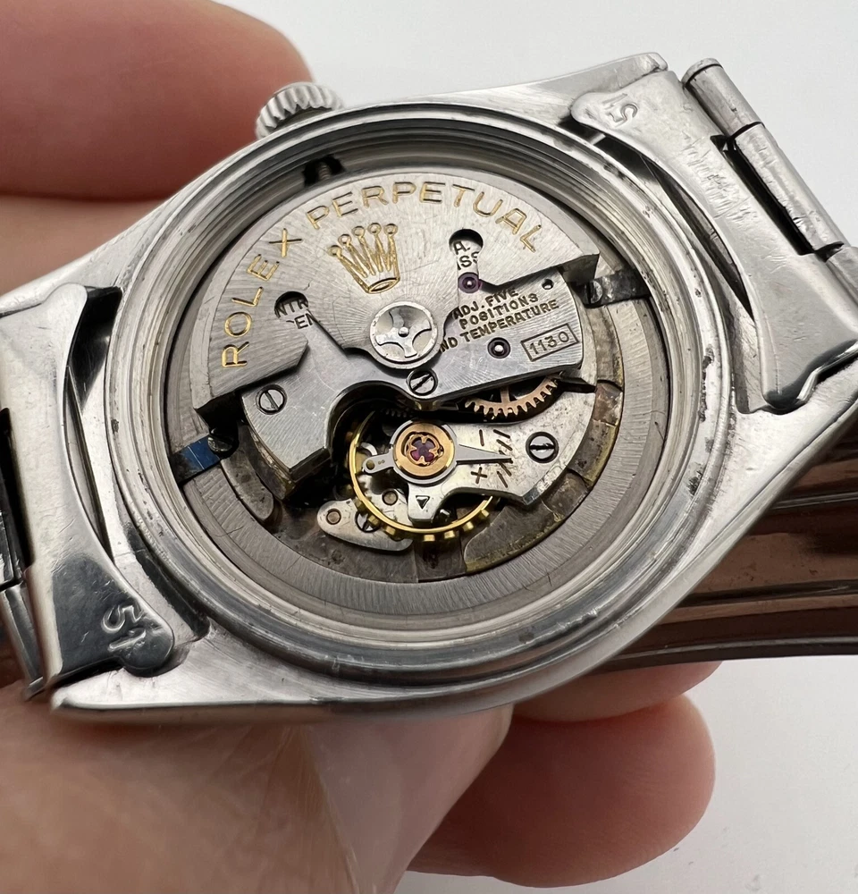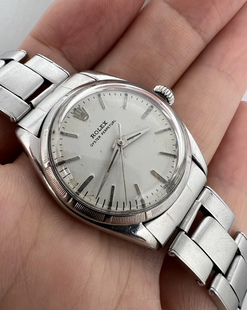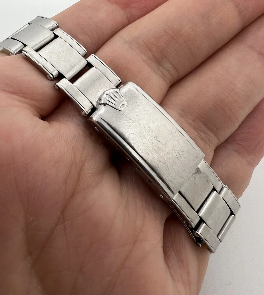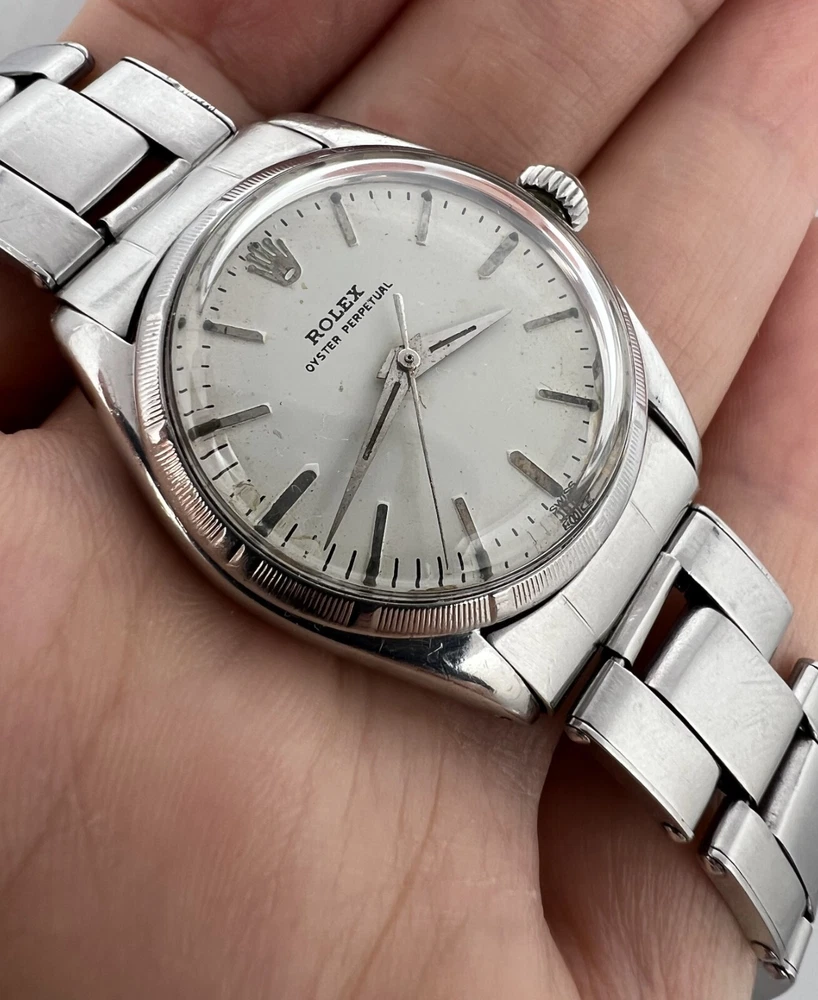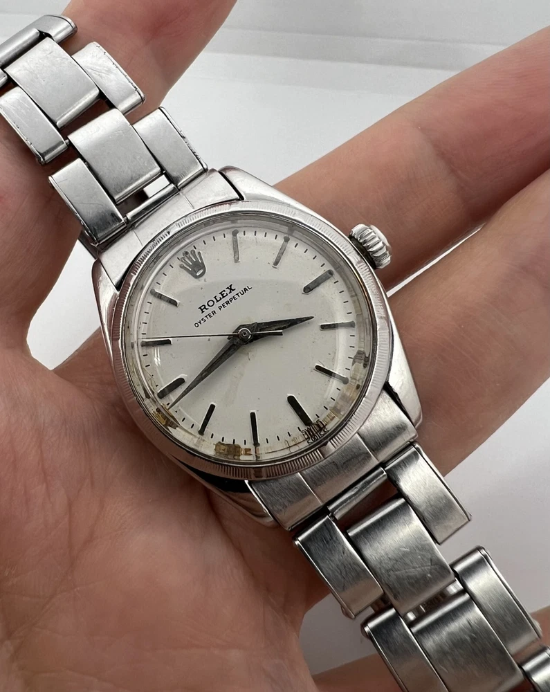 ROLEX OYSTER PERPETUAL AUTOMATIC BUTTERFLY ROTOR REF 6549 CALIBER 1130 G. FRERES BANDS WATCH 30mm THE WATCH IS IN VERY GOOD CONDITION LIKE YOU SEE THE PHOTOS AND KEEP THE TIME VERY WELL. THE DIAL IS IN GOOD CONDITION. IT HAS TINY DAMAGES AT THE CHAPTER RING INSIDE AS YOU CAN SEE FROM THE PHOTOS. THIS WATCH IS VINTAGE FROM 1958. THE MOVEMENT IS AUTOMATIC BUTTERFLY ROTOR CALIBER 1130 IN VERY GOOD CONDITION LIKE YOU SEE THE PHOTO THE CRYSTAL IS PLASTIC IN VERY GOOD CONDITION THE CROWN IS ORIGINAL IN VERY GOOD CONDITION LIKE YOU SEE THE PHOTO THE CASE IS S.STEEL IN VERY GOOD CONDITION. IT IS 30 mm WITHOUT CROWN AND 34 mm with crown.IT HAS TINY SCRATCHES AS NORMAL USE. THE BANDS ARE ORIGINAL AND THEY ARE VERY RARE FOR COLLECTORS .THEY ARE WITH SIGN G .F. BANDS AND THEY ARE IN GREAT CONDITION LIKE YOU SEE THE PHOTOS.THE BANDS ARE MEDIUM SIZE FOR YOUNG LADYS IT HAS TINY SCRATCHES AS NORMAL USE. I SELL AS IT IS IN THE PHOTO THANK YOU