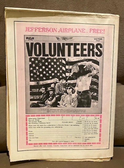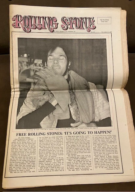 ROLLING STONE Magazine issue No. 49 / December 27, 1969 - This copy has an address label and came from the collection of HARRY TUFT, founder of the Denver Folklore Center. It features MICK JAGGER & the Rolling Stones, NEIL YOUNG, SON HOUSE and a lot more. It is in VG condition with some edge wear.