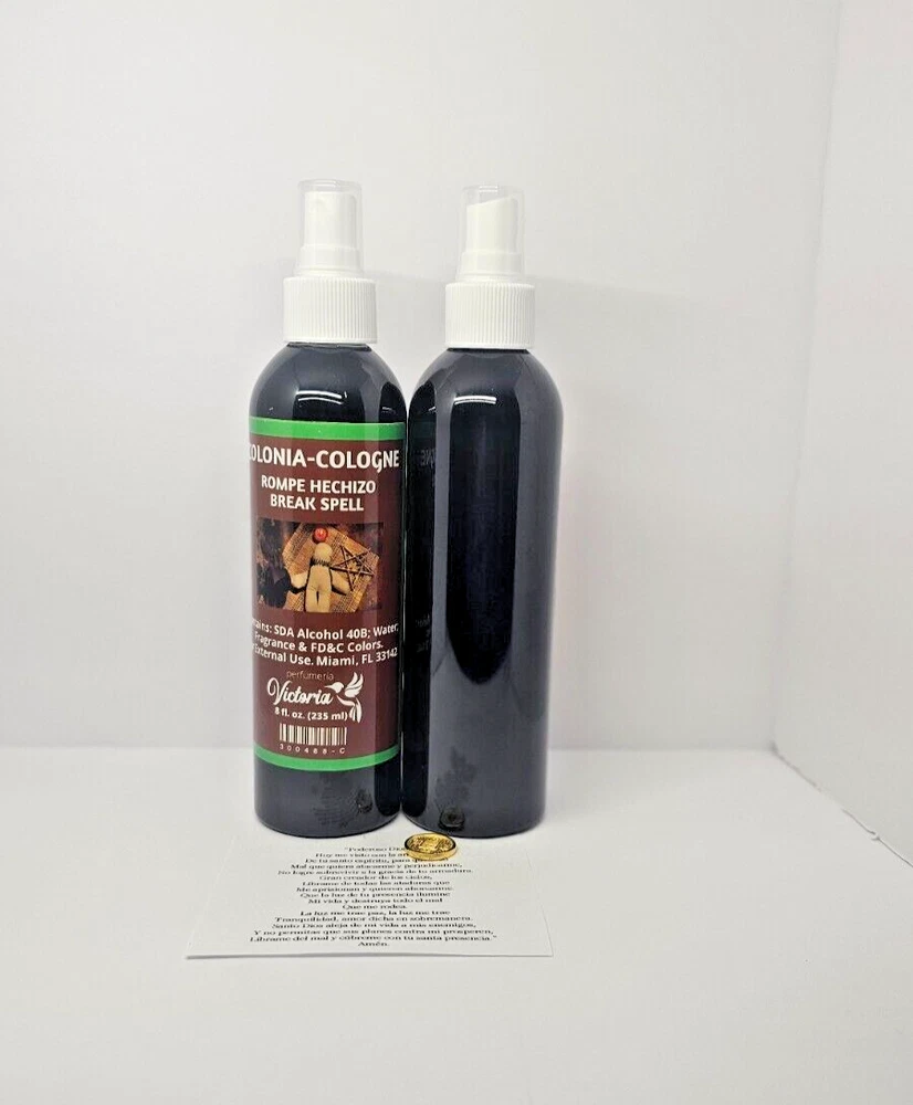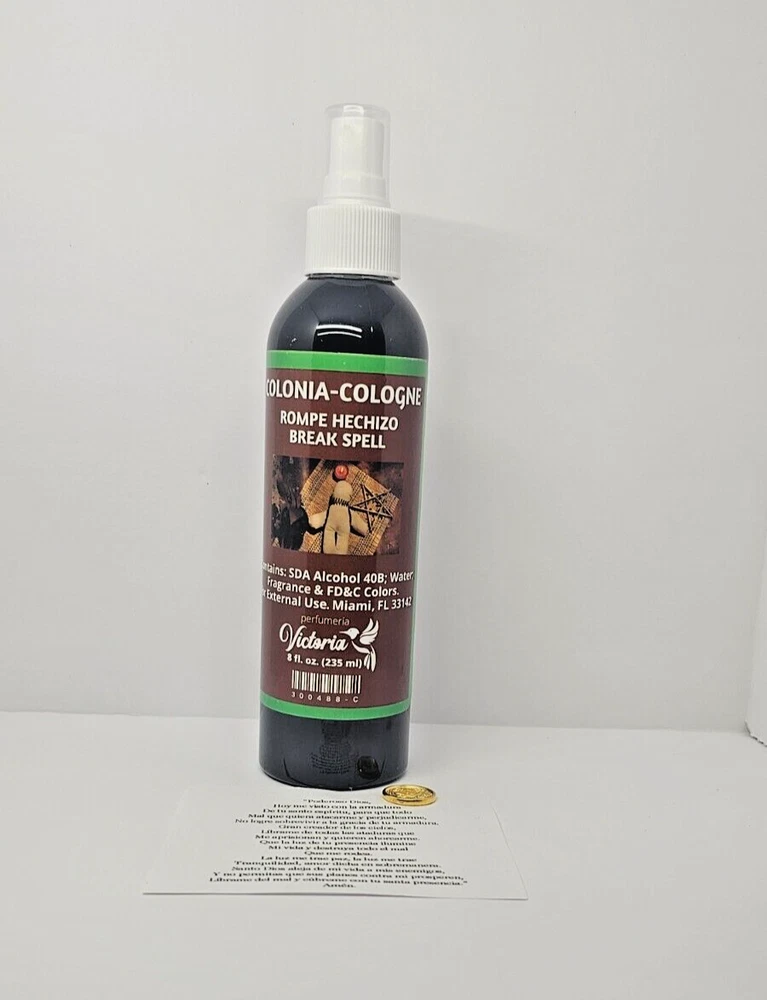 COLONIA ROMPE HECHIZOS elimina y limpia brujeria, aleja las malas energias y malos pensamientos. INCLUYE: ORACION AMULETO INSTRUCCIONES Elaborada con fragancias esenciales de alta calidad. Contienen aceite corporal concentrado con extracto de feromonas. Infundido con hierbas aromaticas, lleva la energía contigo. Modo de uso: Estas fragancias deben aplicarse en el cuello y las muñecas. Para maximizar los resultados se recomienda utilizarse después del baño para evitar que el agua contrarreste el efecto. Leer la oración una vez al día y llevar el amuleto siempre con uno mismo. ¡¡¡Úsalo según las instrucciones y te sorprenderán los resultados!!! SPELL BREAKING COLONY eliminates and cleanses witchcraft, drives away bad energies and bad thoughts. INCLUDES: PRAYER AMULET INSTRUCTIONS Made with high quality essential fragrances. They contain concentrated body oil with pheromone extract. Infused with aromatic herbs, it carries the energy with you. How to use: These fragrances should be applied to the neck and wrists. To maximize results, it is recommended to use them after bathing to prevent water from counteracting the effect. Read the prayer once a day and always carry the amulet with you. Use it according to the instructions and you will be amazed by the results!!!