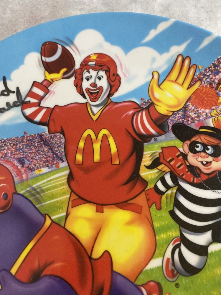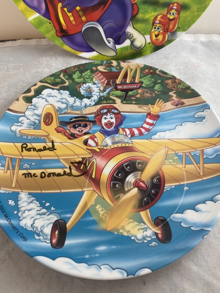 2/2002 Ronald McDonald Collectors Plates featuring the original signature from the official Ronald McDonald from Nebraska. He is retired now which make these plates even more valuable to your collection. These original plates were created in the United States and are a must-have for any collector of McDonald's memorabilia.