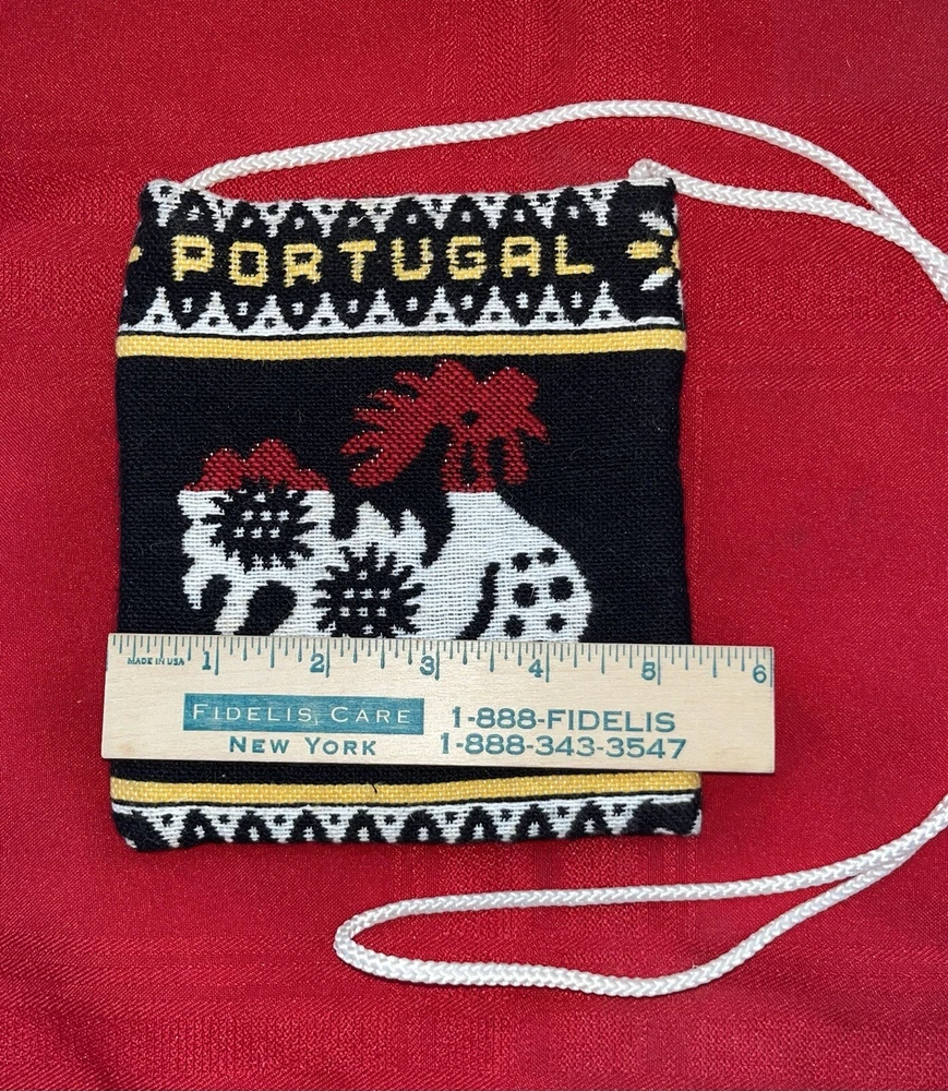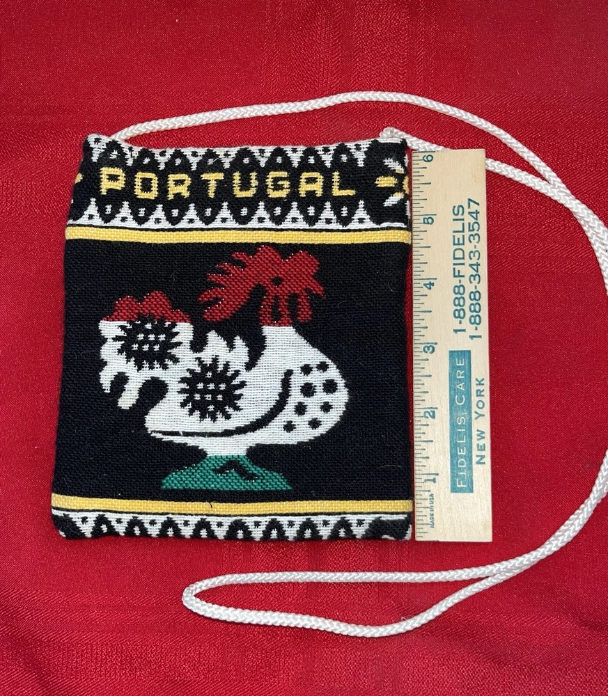 OFFERED HERE IS A ROOSTER THEMED COLORFUL SMALL CLOTH PORTUGAL PURSE POUCH 6x5.25. HAS A VEL. CRO TYPE OF CLOSURE. HAS A PALE YELLOW CLOTH LINING. ALSO A COTTON CORD HANDLE. APPROX 10” DROP. NO DAMAGE. NO SIGNS OF WEAR. NO ODORS. ASK QUESTIONS IF YOU HAVE ANY. SEE MANY PHOTOS. Fast ship (A1 bin) PHOTOS: Please view the many photos on my auctions for close ups and details of condition. Consider the photos as part of the description. Please take the time to click on each photo to enlarge it for details. I also put a ruler in many photos for size. CONDITION: I sell many items in varying stages of condition. Items are stored in my non-smoking, pet free home. Here is a general breakdown: New - A new item from the store, new with tags, or sealed item, never used. Used - A previously owned item will be in good usable condition, unless otherwise noted. Estate Sale item - These items may be old or antiques, their previous environment may have been a smoking or musty one. Some items may need minor cleaning or dusting. PACKAGING: I will package your item carefully and thoughtfully. I use new and recycled packaging materials. I will ship within 24 hours or sooner if possible. I do combine items into one package for multiple wins (if possible). Some larger items cannot be combined. SALES TAX: EBAY handles all sales tax. INTERNATIONAL BIDDERS: If you are an International bidder and wish to bid, please send me a message. I will give you a shipping quote, via First Class International for packages under 4 pounds. FEEDBACK: I strive to obtain a 5 star feedback from you. I pledge to ship fast/accurately describe/communicate swiftly/charge appropriate shipping. Please keep in mind; I will get your purchase to the post office within 24 hours. How long it takes the Post Office to deliver, is not what I am being rated on. If you ask me a question – I will usually answer you right away. I charge the shipping charges set forth by the Post Office, I cannot be held responsible for the high cost of shipping. I am by no means an expert in all that I sell, I will try to the best of my ability to describe my items. Please feel free to ask a question if I have left out a detail. I also welcome advice and helpful thoughts. HAVE A PROBLEM? If you have a problem or concern, please contact me directly. Go to your Purchase History, click on my auction, on the far right will be a drop down box which says More Actions. Click on the arrow and choose contact Seller. I am easy to work with and will make things right for you. COPYING: Did you know Ebay has a policy that prohibits someone from copying your text or photos? It can be found at ebay.com/help/policies/image-text.html - The offending listings can be removed if reported. So please don't copy any part of my listings without permission.  Track Page Views With Auctiva's FREE Counter Track Page Views With Auctiva's FREE Counter