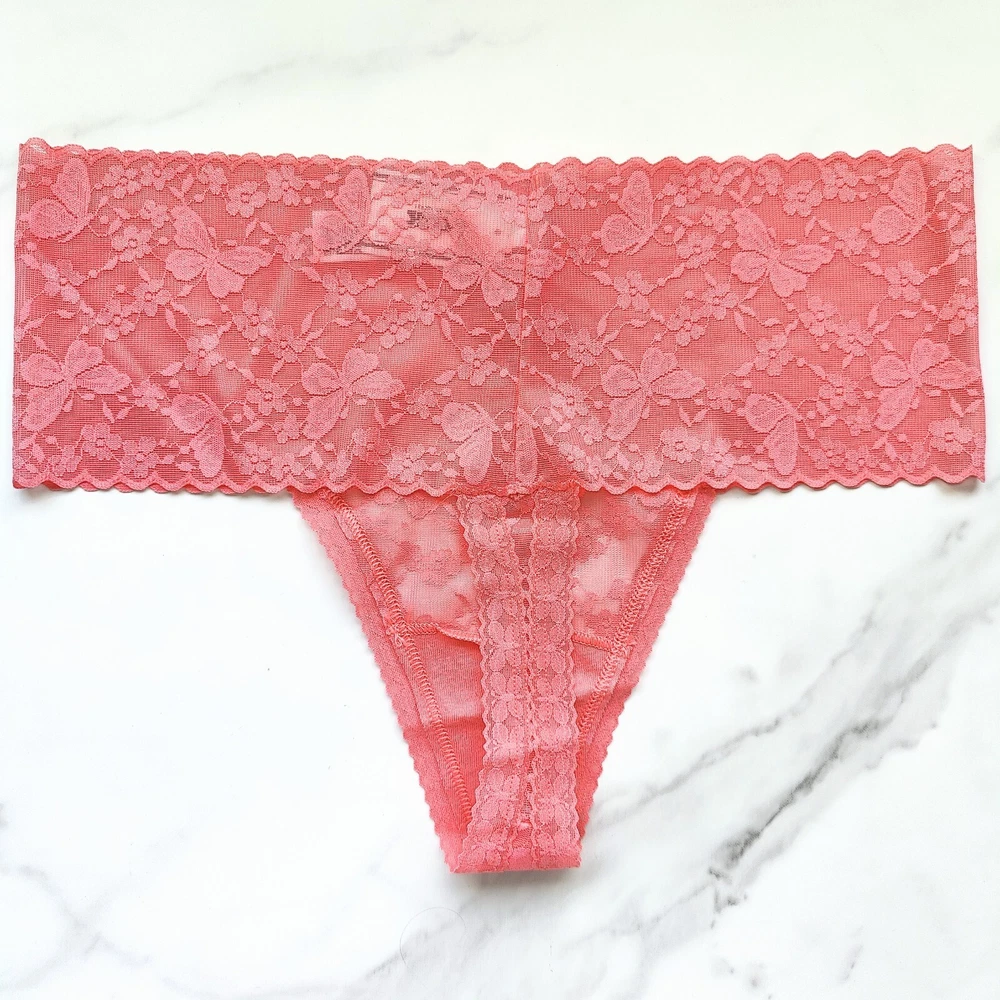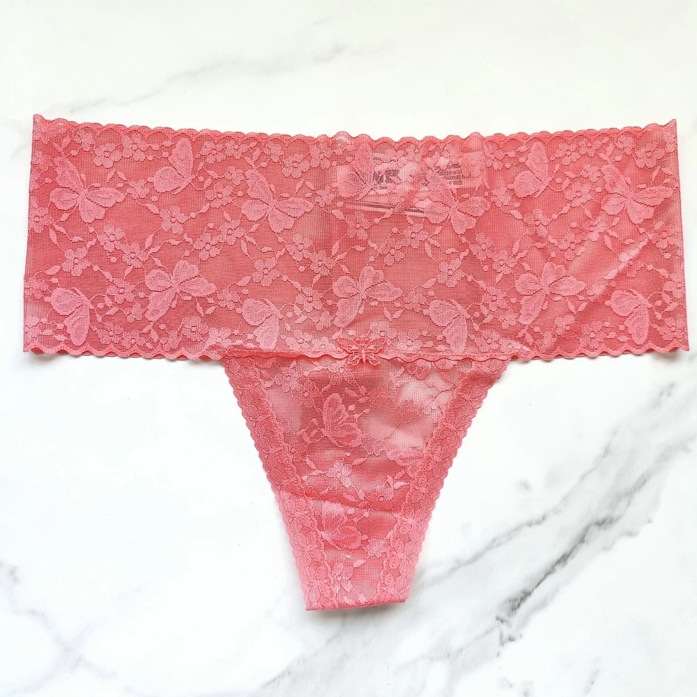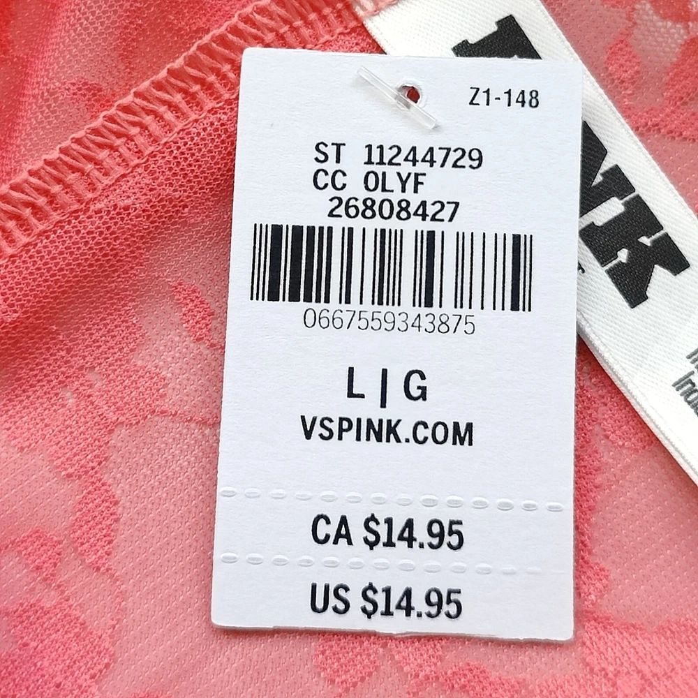 All photos are taken by Goob's Closet & Boutique and may not be reused without permission. Goob's Closet & Boutique lists on multiple platforms. If you choose to wait or "Watch", the listing may sell out on another platform, and will then no longer be available for purchase on eBay without notice to you. This thong panty is designed with minimal back coverage, making it a great choice for a smooth silhouette under clothes. The mid-rise fit offers just the right amount of coverage while keeping you comfortable. The sheer stretch butterfly floral lace is not only beautiful but feels lovely against the skin, and the crochet butterfly detail at the center front adds a touch of whimsy that you’ll adore. The wide waistband ensures that everything stays in place comfortably, and the 100% cotton gusset guarantees breathability where you need it most. Plus, it’s easy to care for with a simple machine wash. Details Thong Style Minimal Back Coverage Mid Rise All-Over Sheer Stretch Butterfly Floral Lace Crochet Butterfly Detail at Center Front Wide Waistband 100% Cotton Gusset Style No. 11244729 Material Body: 60% Recycled Polyamide, 24% Polyamide, 16% Elastane Waist: 64% Recycled Polyamide, 22% Elastane, 24% Polyamide Gusset: 100% Cotton Care Machine Wash Measurements PINK Victoria's Secret Size Small (S) will fit US Size 4-6, Waist 26-27 inches, Hips 36.5-37.5 inches best. PINK Victoria's Secret Size Medium (M) will fit US Size 8-10, Waist 28-29 inches, Hips 38.5-39.5 inches best. PINK Victoria's Secret Size Large (L) will fit US Size 12-14, Waist 30.5-32 inches, Hips 41-42.5 inches best. PINK Victoria's Secret Size Extra Large (XL) will fit US Size 16-18, Waist 34-36 inches, Hips 44.5-46.5 inches best.