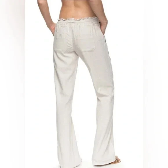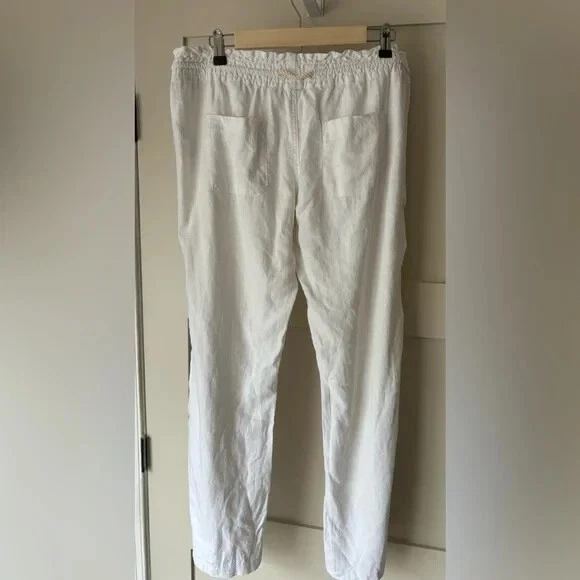 2 pairs White & Black , EUC from my friends closet barely worn Flared leg Cotton linen Garment silicone softener wash Elasticated waistband Heart embroidery on backside right pocket 55% Flax Linen, 45% Viscose