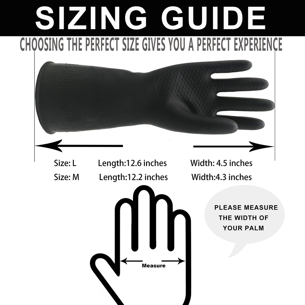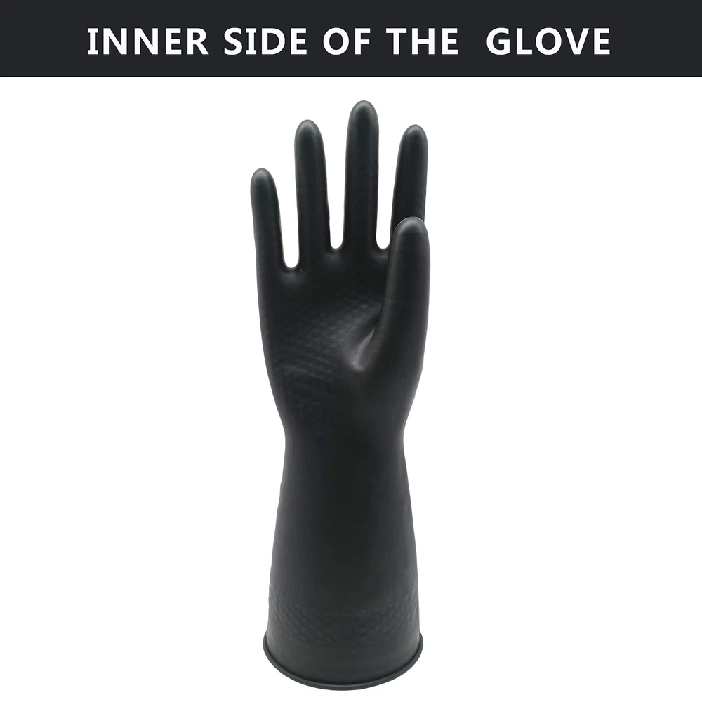 Waterproof Design: The gloves are made of latex with waterproof coating for protection against water and chemicals. Pull-On Closure: The gloves feature a pull-on design for easy on and off. Chemical Resistant: The gloves are resistant to chemicals and can be used for cleaning and industrial applications. Large Size: The gloves come in a 12.6 inch size large to accommodate most adult hands. Reusable and Durable: The gloves are reusable and made to last for long-term use.