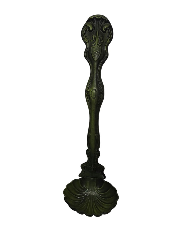 This is a unique and rare collectible item that will make a great addition to any home decor. The Royal 1970 Giant Green Metal Ladle Wall Planter is a perfect blend of style and functionality. Crafted with high-quality metal, this antique-style planter is perfect for growing your favorite plants without taking up much space. The green color adds a touch of nature to your living space, while the 27-inch size makes it a statement piece. The planter is perfect for collectors and enthusiasts who appreciate unique and vintage items. It is made by Royal, a brand known for producing high-quality decorative collectibles. The planter is in excellent shape and ready to be displayed in your home. Add this one-of-a-kind item to your collection today!
