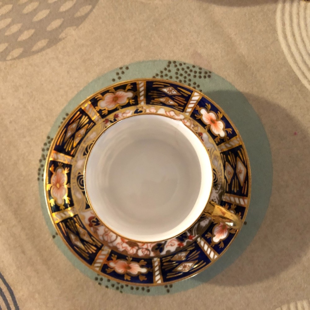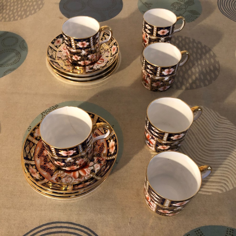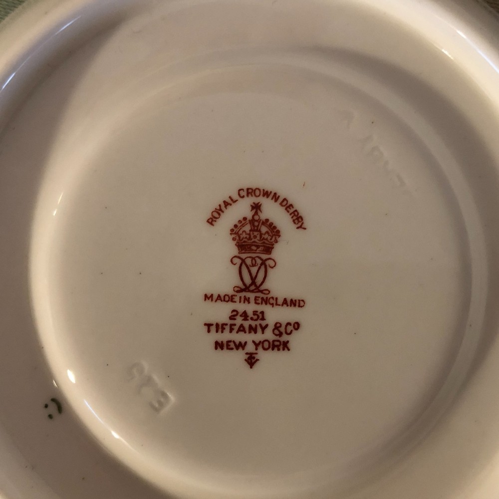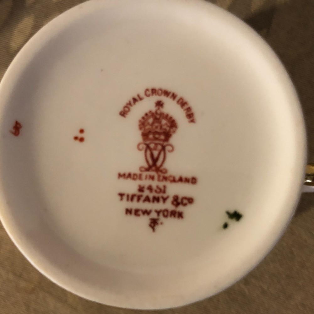 The product is a set of six small demitasse cups and saucers by Royal Crown Derby, known for their traditional Imari pattern and bone china material. Made specifically for Tiffany, NYC, these round cups have a height of 2 inches and come with matching saucers. With a multicolor design and a service for six, this set combines elegance and craftsmanship, perfect for a sophisticated dining experience. Made in the United Kingdom, this two-piece set exudes a traditional style that adds a touch of luxury to any table setting.