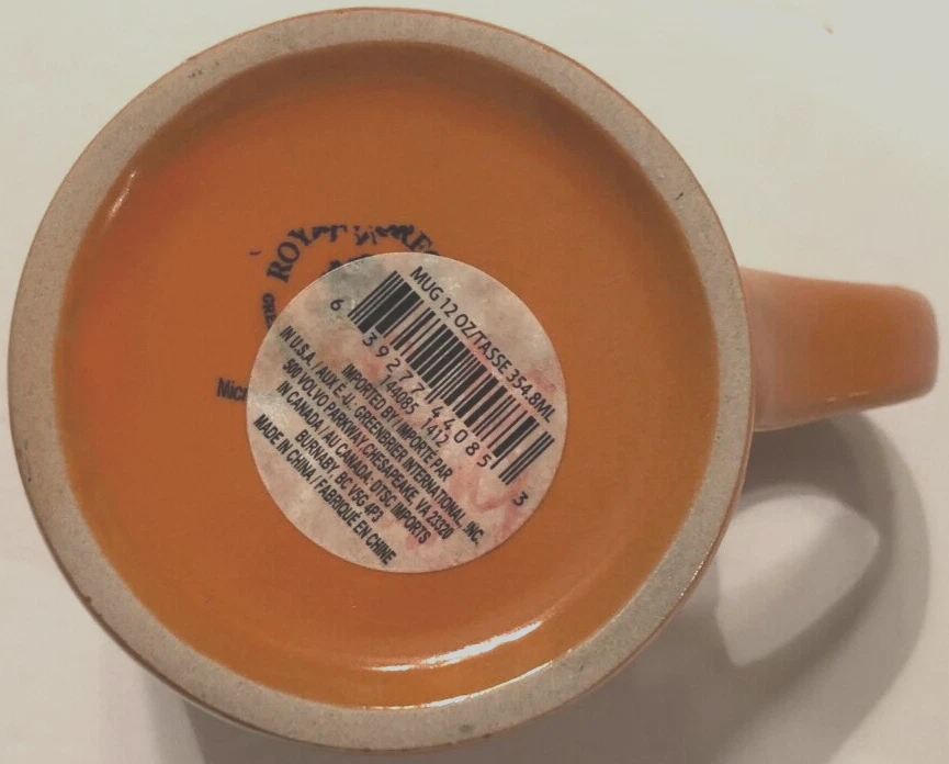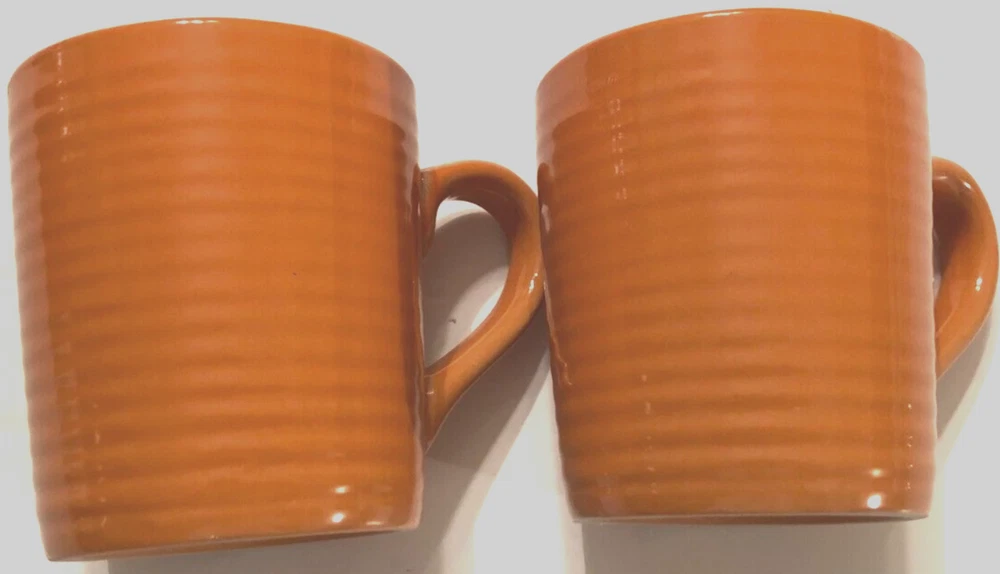 Set of 2 Royal Norfolk Greenbriar International, Inc Orange Ribbed Ceramic / Stoneware Coffee Mugs *Combined Shipping (2 or more) *Diameter: 3.5" *Weight: 11.9 oz (ea.) *Replacement *Glossy Finish *Retired / Discontinued *Color: Orange *Microwave and Dishwasher Safe Condition: New. Old stock. Never used.