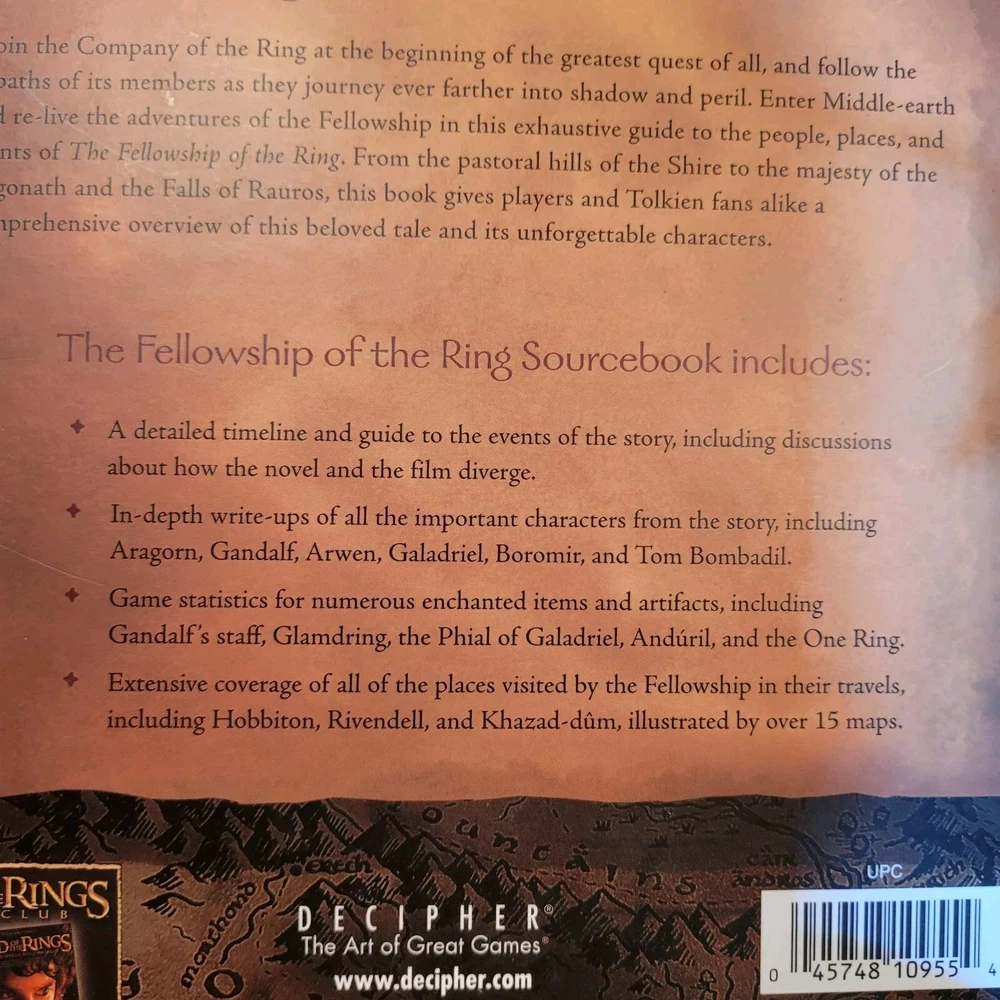 This listing is for a rare RPG Lord Of The Rings The Fellowship of The Ring Role Playing Source Book (Hardback) dated 2003 published by Decipher set out across 128 pages in VGC. From a smoke-free home. Please refer to the photos