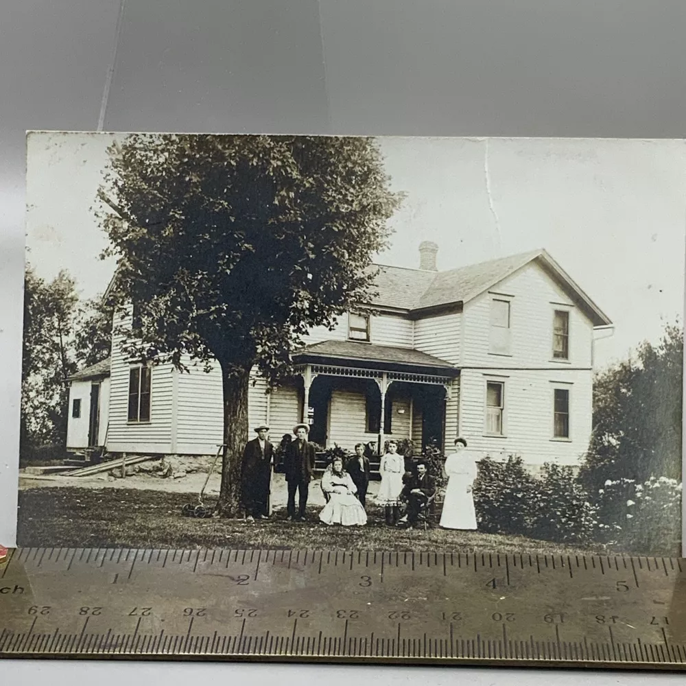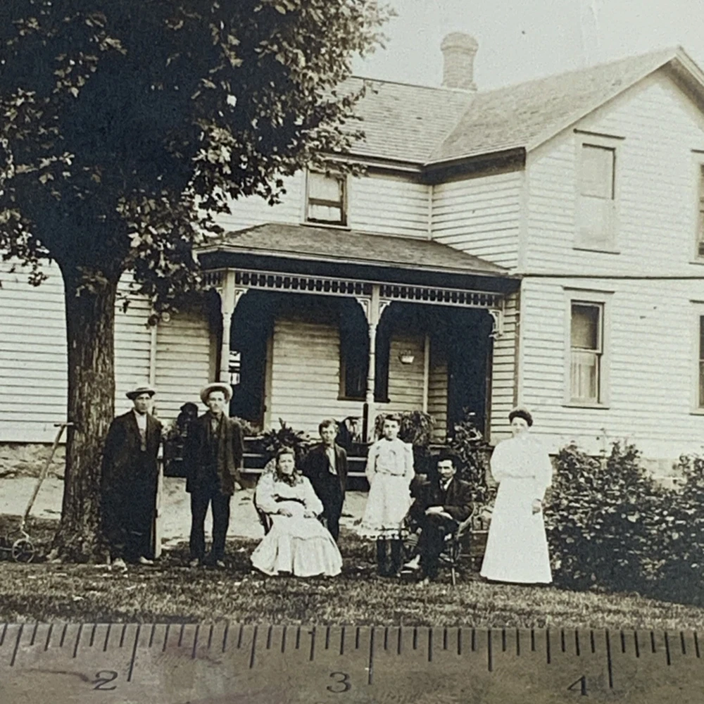 RPPC Postcard Of A Family Sitting Out In Front Of A Great Looking Farmhouse Good looking family. Slight crease in this card.