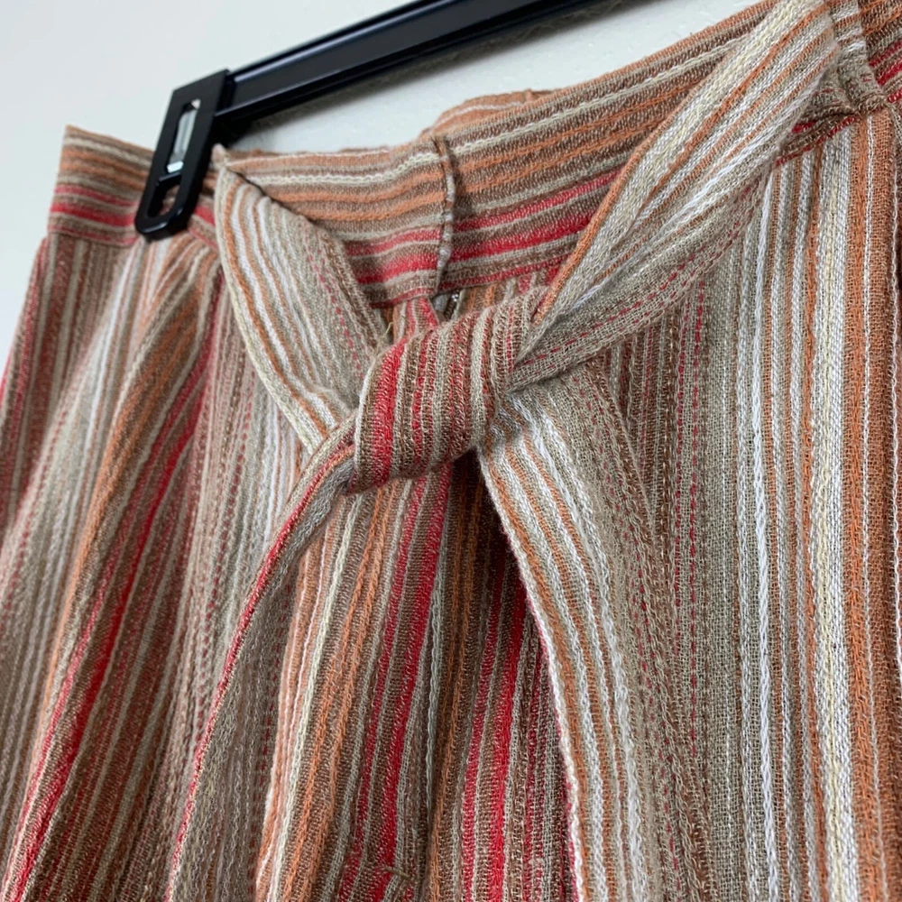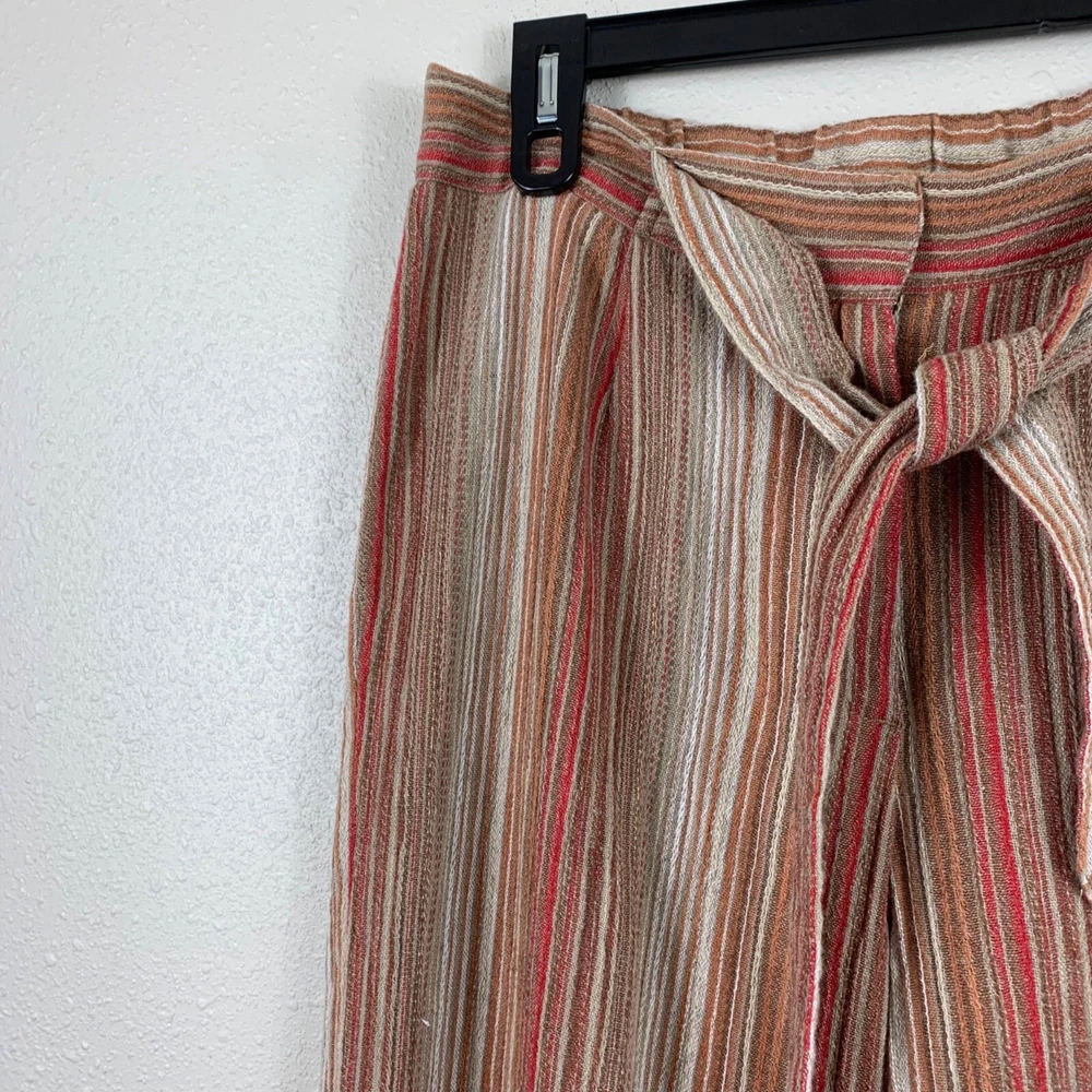 RQT Women’s Linen Blend Wide Leg Tie Waist Striped Pants - Size Large Great preowned condition! Zip fly with hook and latch closure Attached tie around waist Internal button on waist Wide legs Half-waist: 17" Inseam: 29" Length: 41" Rise: 12" Measurements are lying flat, and estimates only. 1P25 24-5498 15 oz Tags: retro, lightweight, striped, casual