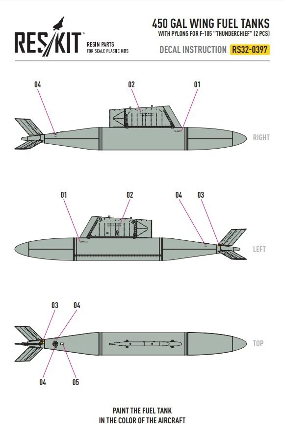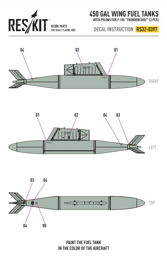Centerline 650 gal fuel tank with pylons for F-105 Thunderchief 1:32 RSU32-0123