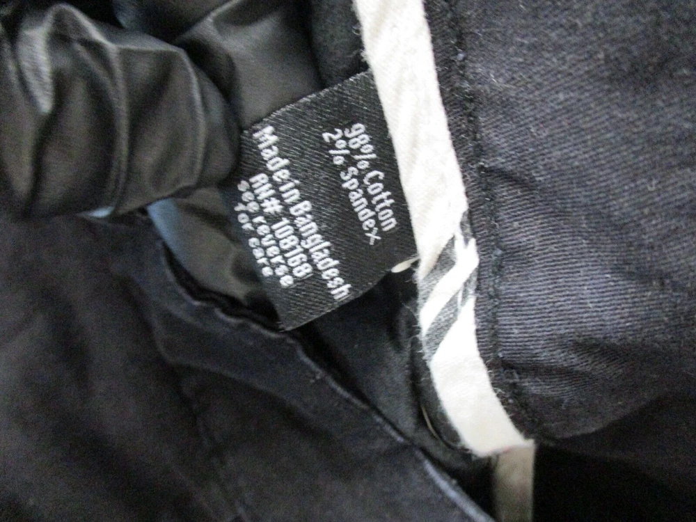 Material: Cotton Blend Brand: RSQ Size: 29 Color: Black Front Type: Flat Front Department: Men Size Type: Regular Fit: Classic Pattern: Solid Fabric Wash: Light Vintage: No Waist Size: n/a Fabric Type: Canvas Occasion: Casual Country/Region of Manufacture: China Inseam: n/a Character: RSQ Theme: American Style: Chino Features: Stretch Closure: Button Accents: Button
