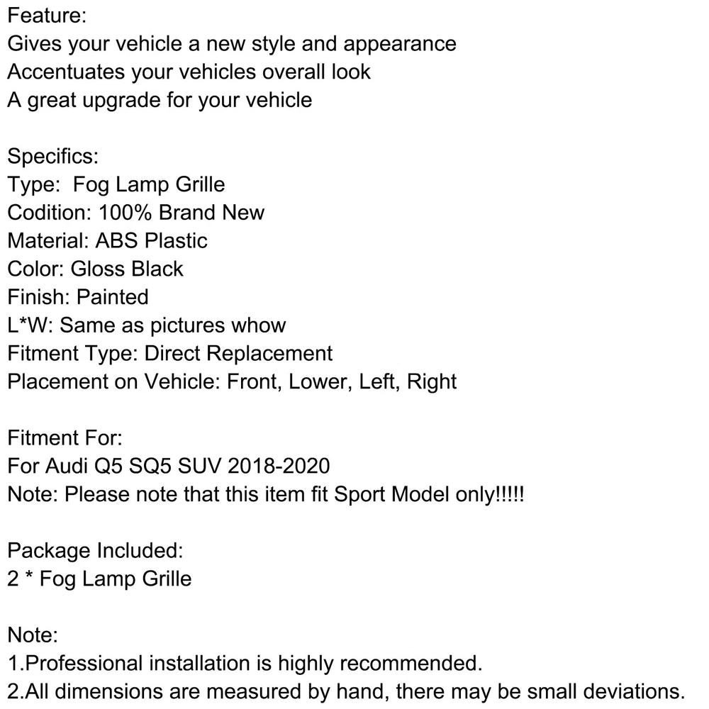 SAFE & SECURE SHOPPING 100% SATISFACTION GUARANTEED FAST SHIPPING Store Categories Store Categories Other eBay Motors Grille You may also like Stainless Steel Weather Protection Box Wall box Rain Cover For Doorbell Socket 218.64 USD Free shipping 3PCS Gloss Black Front Grill Grille Fit Mini R55 R56 R57 R58 R59 Cooper S & JCW 160.65 USD Free shipping Front Bumper Lower Grill Trim 51117355238 Fit Mini F55 F56 F57 2014-2023 90.65 USD Free shipping Gloss Black Front Bumper Grill Grille Fit BMW 2 Series F44 2020-2023 Coupe M 100.65 USD Free shipping Fog Lamp Light Cover Insert S-line Grill Fit VW T5 T5.1 2010-2015 Gloss Black !! 69.6 USD Free shipping 2PCS Rear Tail Lights Lamps For Toyota Tacoma 2001-2004 W/Bulbs US 84.65 USD Free shipping RSQ5 Black Front Honeycomb Fog Lamp Grilles Cover For Audi Q5 SQ5 2018 2019 2020 Product Description Feature: Gives your vehicle a new style and appearance Accentuates your vehicles overall look A great upgrade for your vehicle Specifics: Type: Fog Lamp Grille Codition: 100% Brand New Material: ABS Plastic Color: Gloss Black Finish: Painted L*W: Same as pictures whow Fitment Type: Direct Replacement Placement on Vehicle: Front, Lower, Left, Right Fitment For: For Audi Q5 SQ5 SUV 2018-2020 Note: Please note that this item fit Sport Model only!!!!! Package Included: 2 * Fog Lamp Grille Note: 1.Professional installation is highly recommended. 2.All dimensions are measured by hand, there may be small deviations. About Us Shipping Terms Contact Us About Us Bruce & Shark is a company Focus on Motorcycle parts more than 11 years. The design inspiration comes from the awe of the vast sea and worship of the fighting sharks, therefore Bruce & Shark takes a shark as brand logo. Since its inception, we have always put the "customer first" and "top quality" as our principle. We specialized in selling Motorcycle parts and providing customers with various types of high-quality products. Our brand Bruce & Shark has enjoyed good reputation in America, Europe, Japan, Canada and Africa, covering more than 30 countries. Our vision is to deliver high-quality Motorcycle parts products and sincere services to the world. Our main products are motorcycle mounted, fuel pump, stator, windshield, Seat Cover, motorcycle fairing. Welcome to our shop to choose products that are worth more for your Motorcycle! Please Add me to your list of favorite sellers and visit often. Thank you for your business. Shipping Shipping Terms International Buyers – Please Note: 1. Import duties, taxes and charges are not included in the item price or shipping charges. These charges are the buyer’s responsibility. 2. Please check with your country’s customs office to determine what these additional costs will be prior to bidding/buying. 3.Buyers' Information: We strive our best to provide you the most reliable, affordable way of shipping service. But sometimes international delivery is highly depended on the courier company and local customs/duties. If you do not receive your item on time, please sent us ebay message immediately for further assistance. Thank you for your understanding. Terms We stand behind everything that we sell and will do everything possible to assure you are satisfied. When you receive your purchase if you are not 100% satisfied, please sent me ebay message and we will do our best to make you happy. If you still want to return your purchase, simply ship the item(s) back to us and we will refund your original purchase price and the original shipping charge. Buyers are responsible for the postal cost of returning the items. We must be notified of the intent to return your item within 30 days of receiving the item. Items returned must be in the same condition that they were received. How to return 1,Please ask us for return address . 2,Shipping back the package . The RMA#(Return Merchant Authorization Number = Your ebay ID) must be clearly written on the return package ,Otherwise the package will be refused. 3,Sent us the return tracking number. 4,All returns will be inspected prior to a credit being issued. Contact Us Sent ebay message in English If you have any questions, our Customer Service staffs welcome you to sent me ebay message. We strive to answer all questions and resolve any problems as quickly as possible. Business Hours: HongKong Time GMT+8:00 Monday-Saturday 9:00-17:00 Copyright © 2022 Tongtool