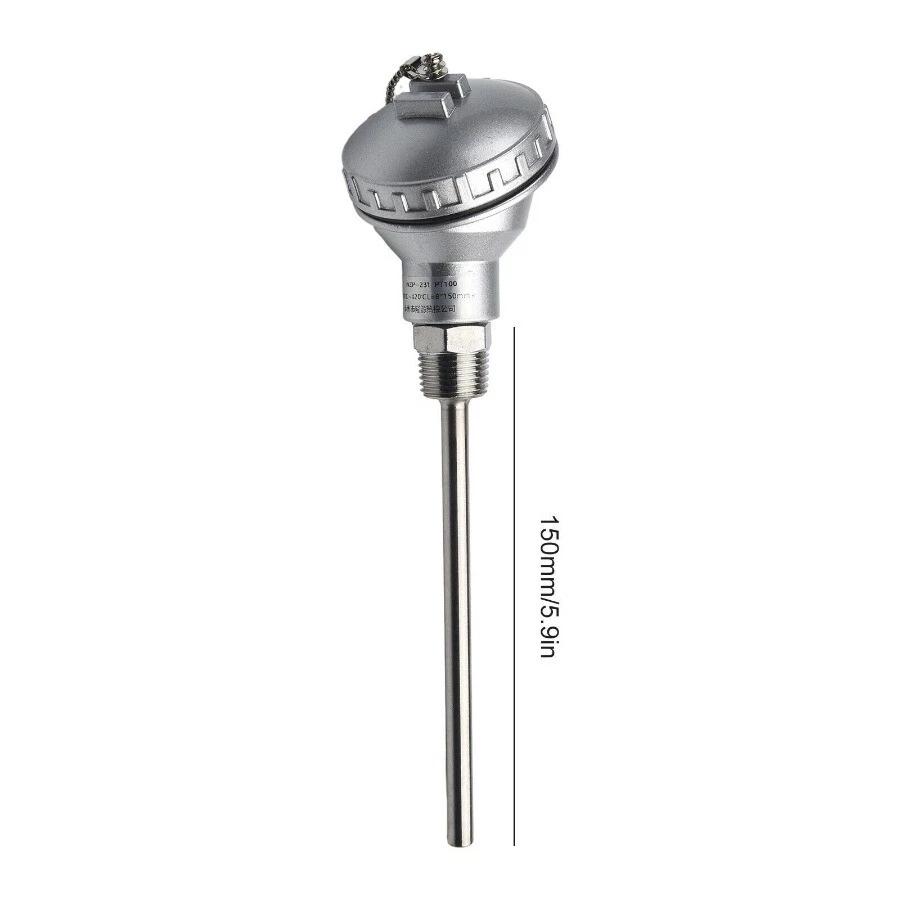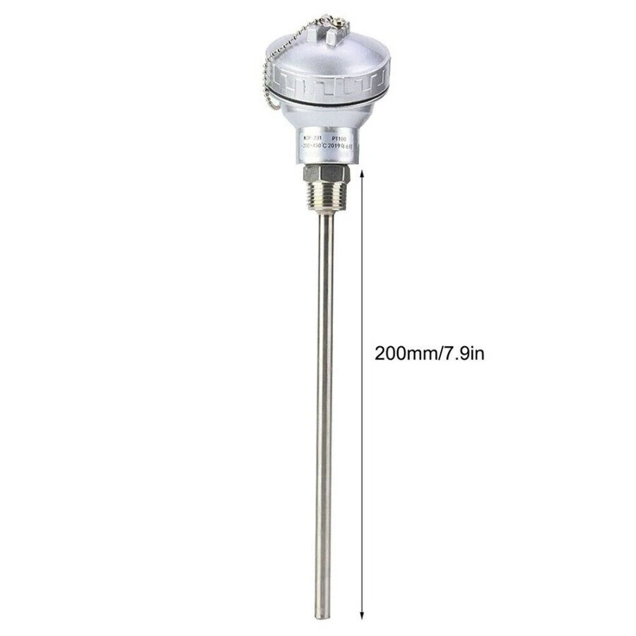 RTD PT100 Temperature Sensor Probe 1/2\" NPT Thread Thermocouple Terminal-Head This is 3 core specification, need 2 core please contact customer service Features: Brand new and high quality Made of high-quality materials, durable The available thread type is 1/2''. Simple structure and easy installation. Compatible with all temperature controllers. Exquisite craftsmanship, high performance and high efficiency. Made of stainless steel, rust-proof, anti-corrosion and durable. It has a wide measurement range and can measure temperatures from -200 to 420 degrees. Specifications: Model: PT100 Pipe length: 50mm, 100mm, 150mm, 200mm, 250mm, 300mm, 400mm (optional) Material: 304 stainless steel Color: Silver Temperature range: -200~420°C Pipe diameter: 6 mm Thread type: PT1/2'' Package Included: 1 * RTD (resistance temperature detection) with PT100 temperature sensor head 1 * Thread PT1/2'' 1 * Protective tube NOTE: 1.Your valid phone number is very necessary for the shipping, otherwise we can't guarantee that the package would safely arrives. 2. Any Customs tax applied to this package should be covered by buyers. 3.As has been stated on the eBay item description, Import duties, taxes and charges are not included in the item price and shipping charges.These charges be at the buyer responsibility. meanwhile the customs tax depend on the buyer local customs office.