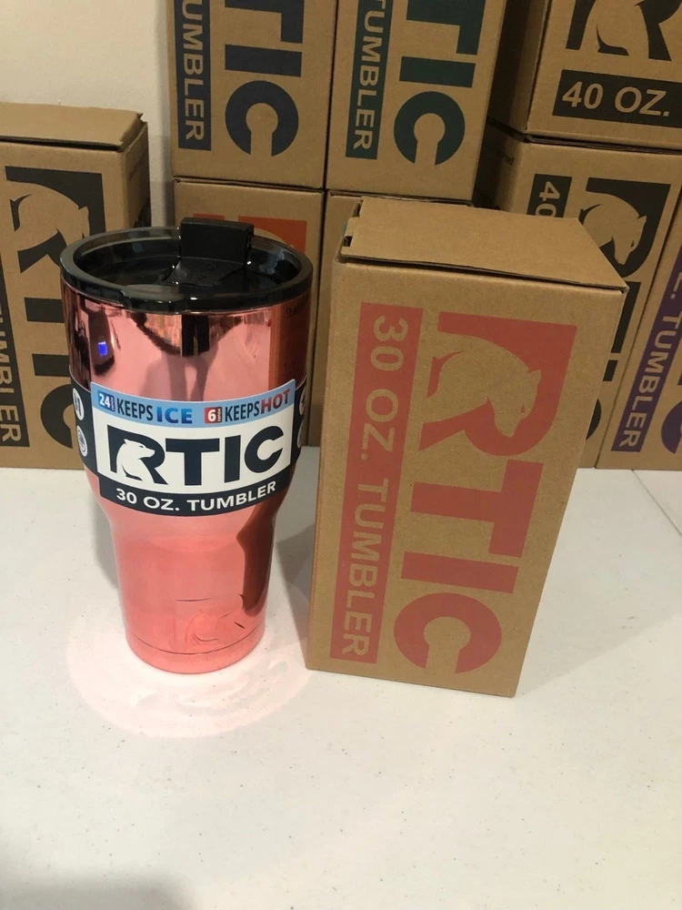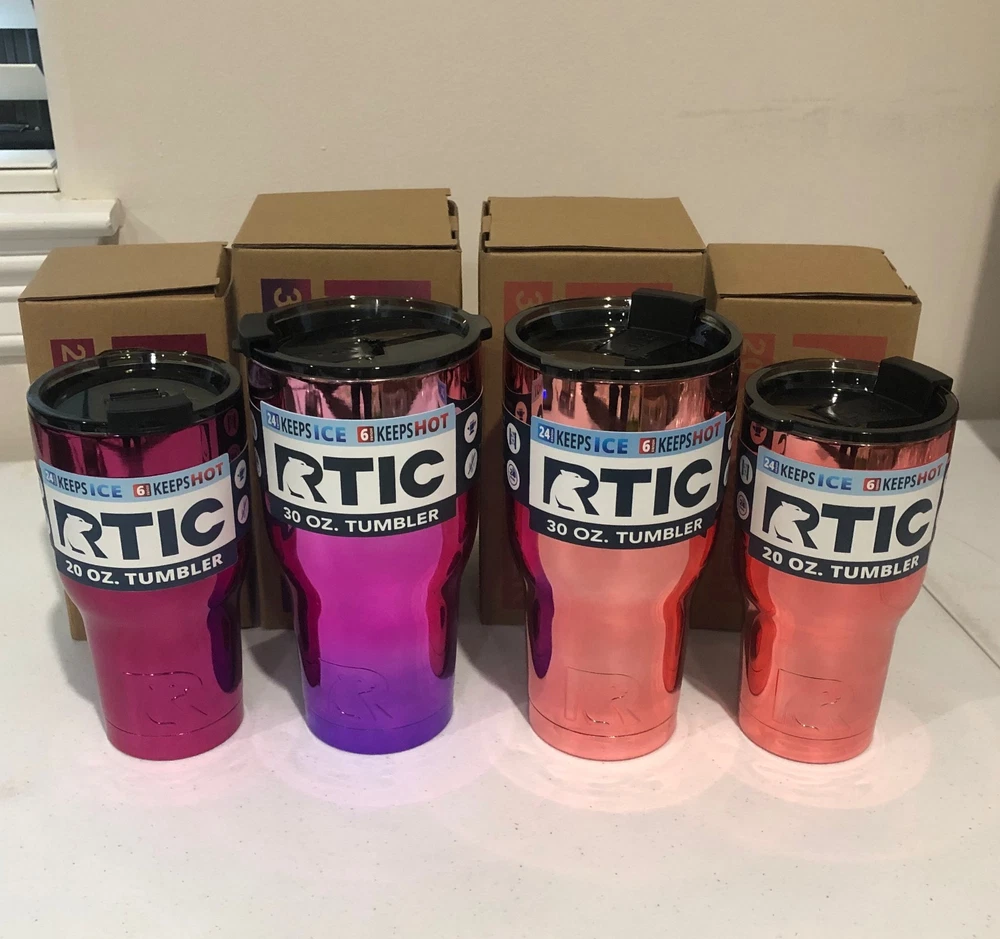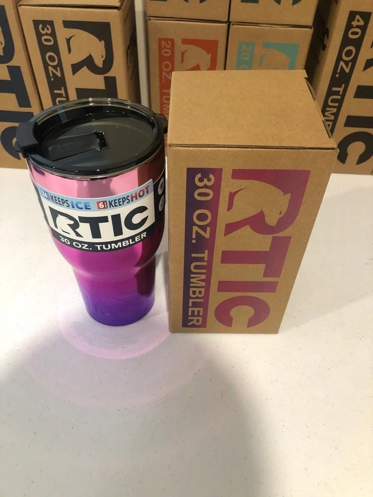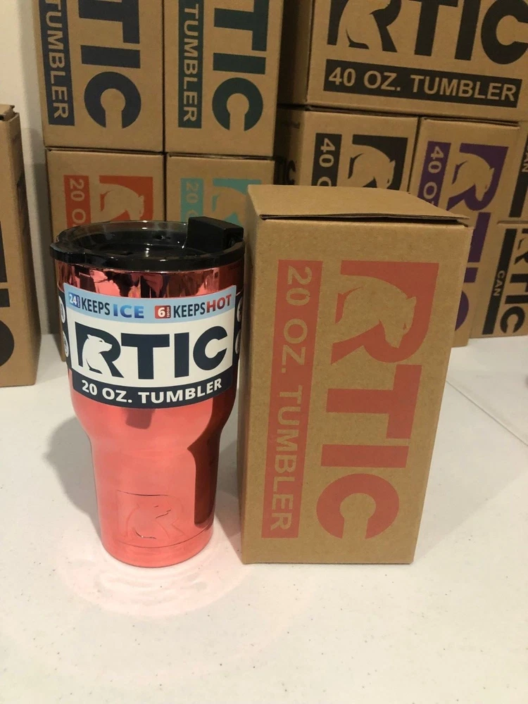 These are RTIC factory originals. THESE ARE NOT KNOCK OFFS!! Guaranteed 100% Original RTIC! Overview 30oz and 20oz RTIC Tumblers are stainless steel, double wall vacuum insulated. Keeps your drinks ice cold longer - works great for hot beverages. The included all-new shaded Splash Proof lid lets you know exactly how much drink you have. The flip-top closure resists spills and is straw friendly. Easy to clean. 20oz Dimensions 30oz Dimensions