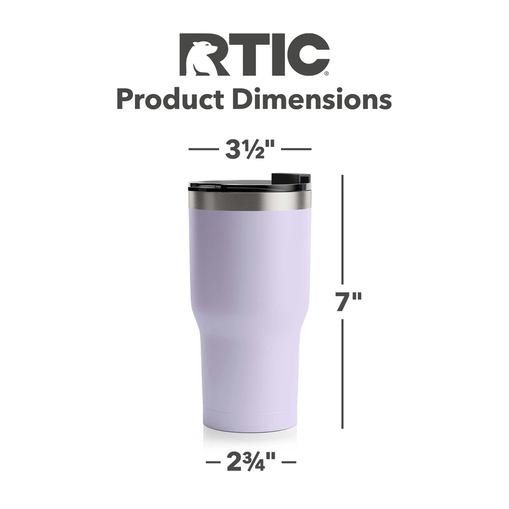 RTIC 20oz Insulated Tumbler Stainless Steel Coffee Travel Mug with Lid, Spill Proof, Hot Beverage and Cold, Portable Thermal Cup for Car, Dusty Lilac Product Details Size: 20 Ounce Color: Dusty Lilac Brand: RTIC UPC: 840008254827 EAN: 0840008254827 MPN: Does not apply Brand: RTIC Color: Dusty Lilac Special Feature: Insulated Style: Tumbler Theme: Sports Brand: RTIC Color: Dusty Lilac Special Feature: Insulated Style: Tumbler Theme: Sports Recommended Uses For Product: Travel Occasion: Back To School Included Components: Lid Shape: Round Pattern: Solid Product Care Instructions: Machine Wash Age Range (Description): Adult Material Feature: Insulated Reusability: Reusable Unit Count: 1.0 Count Product Dimensions: 3.5"W x 7"H Number of Items: 1 Manufacturer: RTIC UPC: 840008254827 Size: 20 Ounce Item Weight: 13.1 ounces Country of Origin: China Date First Available: November 13, 2023 THE IDEAL TRAVEL COMPANION Our insulated tumblers are made for drinks on the go. A stainless steel tumbler with lid that comes in 20oz, 30oz, and 40oz sizes in an assortment of colors. DOUBLE-WALL INSULATION Its a double-wall vacuum-insulated travel mug with an airtight seal. Retains heat and cold, to keep your drinks ice cold longer and warm beverages piping hot. FOR HOT AND COLD DRINKS This insulated coffee tumbler is a cold and hot beverage travel mug. Use this travel tumbler for tea, the outside stays dry with its sweat-proof exterior. STAINLESS STEEL CONSTRUCTION Our drink tumbler features a sleek 18/8 stainless steel construction. Ideal to go coffee mug for car, travel coffee cup, camping coffee mugs, rv travel cup, and more. SECURE LID TO PREVENT SPILLS The tumbler cups were designed with a flip-top, screw-on closure lid to prevent unwanted spills, giving you a spill proof coffee tumbler The narrow and tall design fits more cup holders.