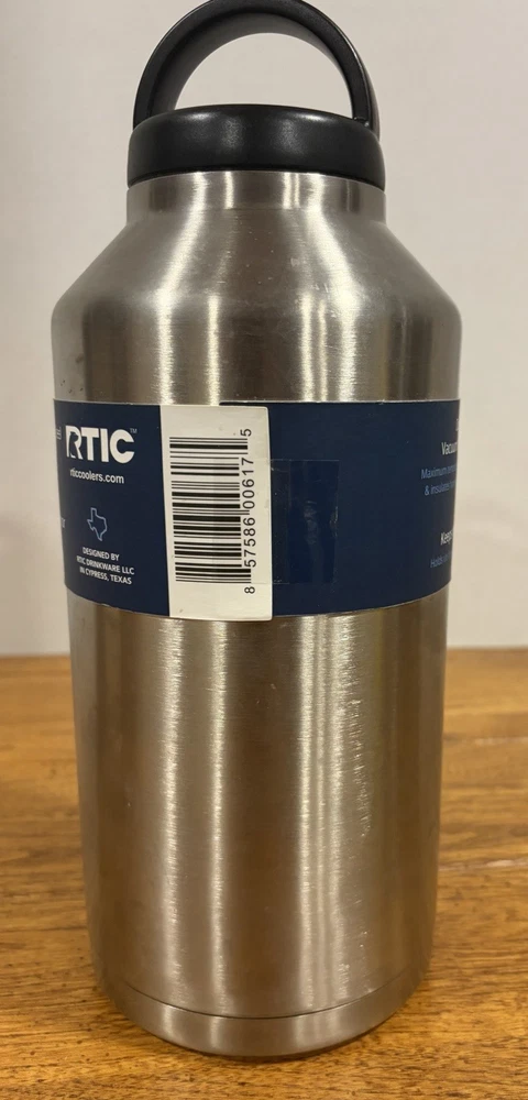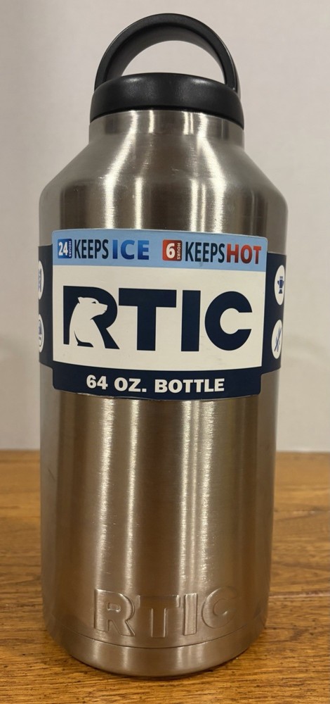The RTIC 64oz Water Bottle Jug is a high-quality stainless steel water bottle that is perfect for outdoor activities like camping and hiking. With a screw-on lid and insulated design, this half-gallon bottle is leak-proof and will keep your drinks cold for longer periods. The sleek silver color and sporty theme make it a stylish choice for adventure and coffee enthusiasts. Additionally, the BPA-free material ensures that your water is safe for consumption. Perfect for staying hydrated on the go.
