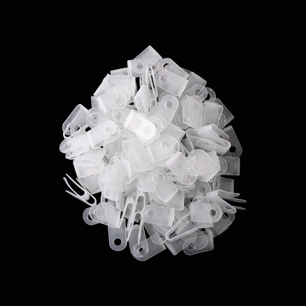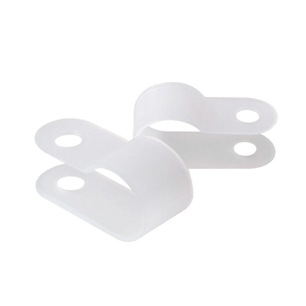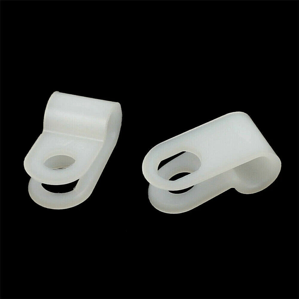Product Description 100x P Clips White Nylon Fasteners Car Brake Pipe Wire Plastic Cable Clamp Hose CABLE CLAMPS Nylon White Screw Down R TYPE Adjustment Mounting hose cable Description: * Closed diameter cable clamps. * The cable clamp pack can be used anywhere clean looking wiring is needed: Home, Automotive, Marine, Office. It also can be used to organize many different types of cables such as jumper cable clamps, metal cable clamps, wire cable clamps, battery cable clamps, steel cable clamps, throttle cable clamps, plastic cable clamps, stainless steel cable clamps and more. Specification: Material: Nylon Main Color: white Type: R-Type Closed Diameter: 1/8" 3/16" 1/4" 5/16" 3/8" 1/2" 5/8"