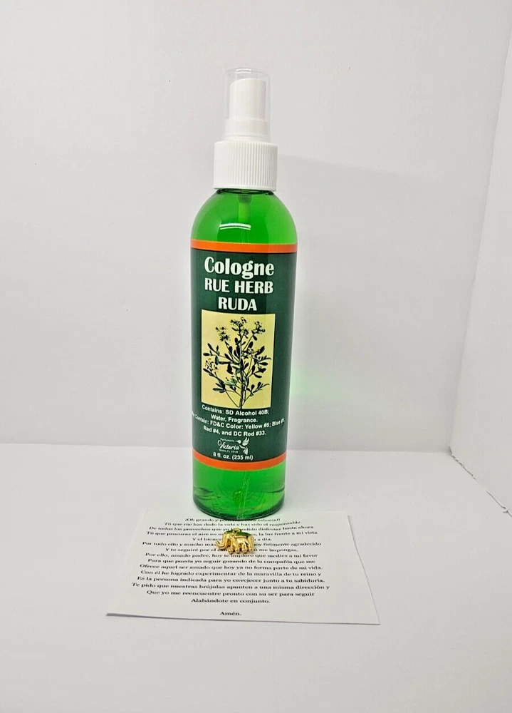 COLONIA RUDA CON FEROMONAS atrae dinero, suerte, purifica, limpia, consagra, protege, aleja los malos espíritus y energías negativas. INCLUYE: ORACION AMULETO INSTRUCCIONES Elaborada con fragancias esenciales de alta calidad. Contienen aceite corporal concentrado con extracto de feromonas. Infundido con hierbas aromaticas, lleva la energía contigo. Modo de uso: Estas fragancias deben aplicarse en el cuello y las muñecas. Para maximizar los resultados se recomienda utilizarse después del baño para evitar que el agua contrarreste el efecto. Leer la oración una vez al día y llevar el amuleto siempre con uno mismo. ¡¡¡Úsalo según las instrucciones y te sorprenderán los resultados!!! RUE COLOGNE WITH PHEROMONES attracts money, luck, purifies, cleanses, consecrates, protects, drives away evil spirits and negative energies. INCLUDES: PRAYER AMULET INSTRUCTIONS Made with high quality essential fragrances. They contain concentrated body oil with pheromone extract. Infused with aromatic herbs, it carries the energy with you. How to use: These fragrances should be applied to the neck and wrists. To maximize results, it is recommended to use them after bathing to prevent water from counteracting the effect. Read the prayer once a day and always carry the amulet with you. Use it according to the instructions and you will be amazed by the results!!!