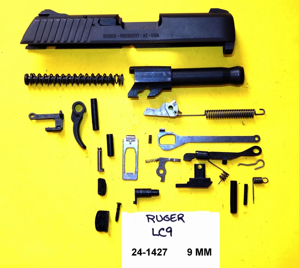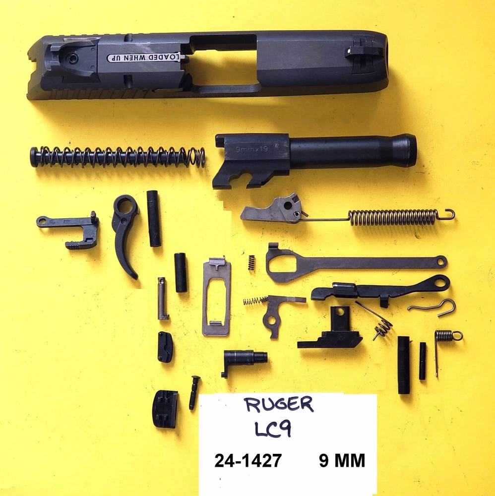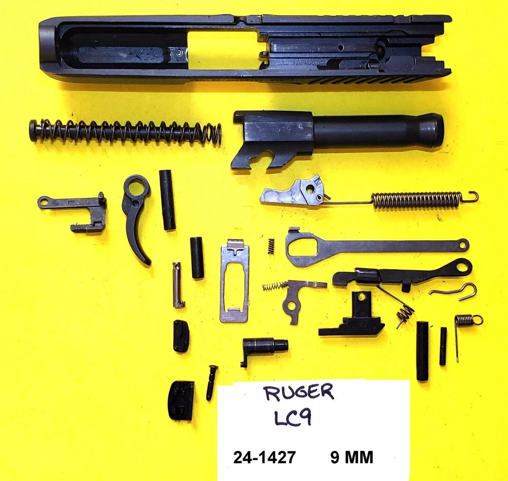 RUGER LC9 BLUED STEEL IN 9 MM CALIBER THE SLIDE & BARREL ARE IN NICE CONDITION, TRIGGER, List :These parts were made for and Compatible with the RUGER LC9 ::INCLUDES Complete Slide, Barrel, Recoil Spring, Hammer, Trigger, Transfer Bar, Slide Release, MAGAZINE RELEASE IS INCLUDED ( IS IN THE GRIP ) Recoil Rod And Spring, Take Down PIN, and Screws, Safety, Safety Pins, Springs THERE IS NO FRAME OR RECEIVER ITEM # 24-1427 USED Parts May show some blemishes, scratches & handling marks here and there. Please check carefully to insure that the parts you need are included. Don’t miss a bargain on these hard to find parts! Some parts will require cleaning. These parts are used and will show signs of use. We start our listings at the lowest price we can. WE CANNOT PULL INDIVIDUAL PARTS FROM PARTS LOTS AS THEY ARE PRE PACKAGED AND READY TO SHIP. WE OFFER OUR PARTS AT THE LOWEST POSSIBLE PRICE. Will ship to U.S.A. addresses only. Alaska and Hawaii residents please email for shipping quote on long gun kits or shotgun/rifle barrels. No local pick up, No exceptions. Payment is expected within 3 days of the end of the SALE. RILS99 HAS A 100% CUSTOMER SATISFACTION POLICY! Please notify of us through eBay if you have any problems within three days of receipt of the item. We are here to make you a satisfied customer. Please remember – Communication is EVERYTHING because we will bend over backwards to help our valued customers. In no event shall RILS99, its officers, directors, employees and or other representatives be liable for any damages of any kind, including without limitation, direct, indirect, compensatory, special, consequential, punitive, and/or incidental damages related to the products sold. All firearms parts should be inspected and installed by a competent gunsmith.