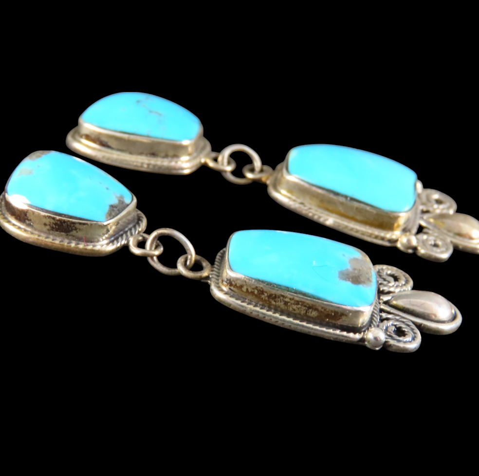 $ 105.6Vintage Native American Sterling Silver Turquoise Dangle Earrings Navajo Zuni...