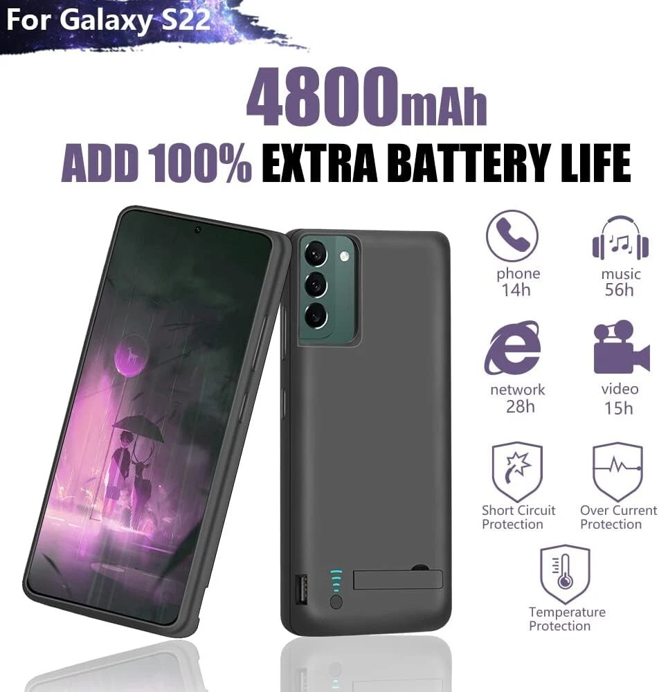 RUNSY Samsung Galaxy S22 Battery Case - 4800mAh Rechargeable Charger, 100% Extra