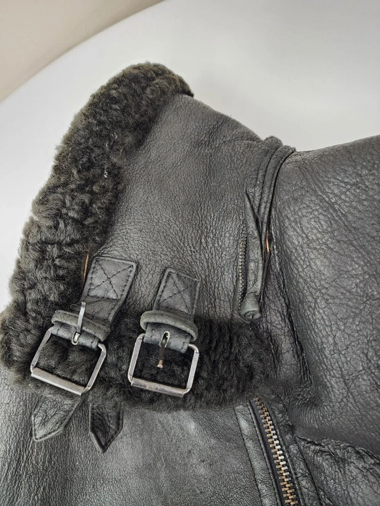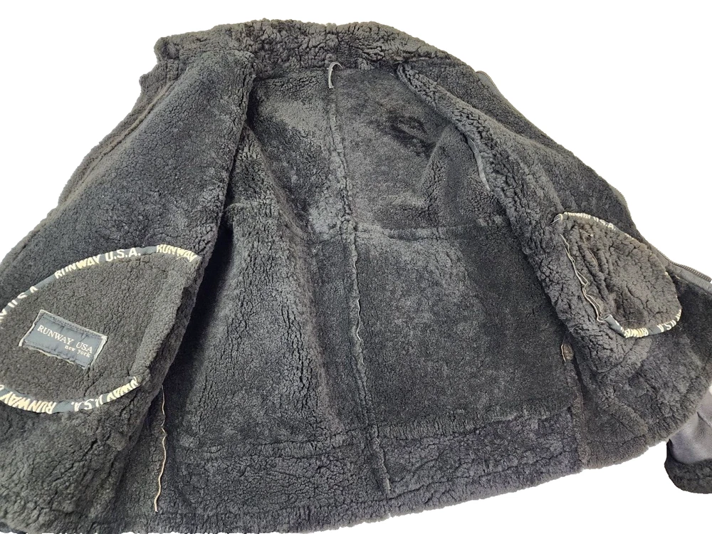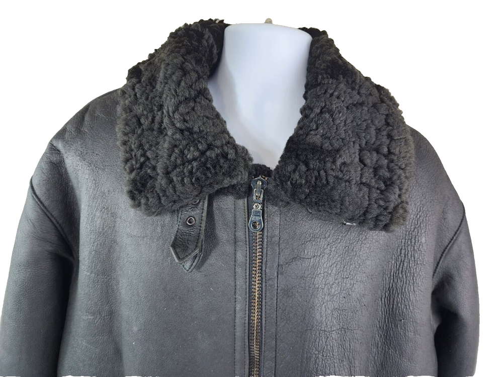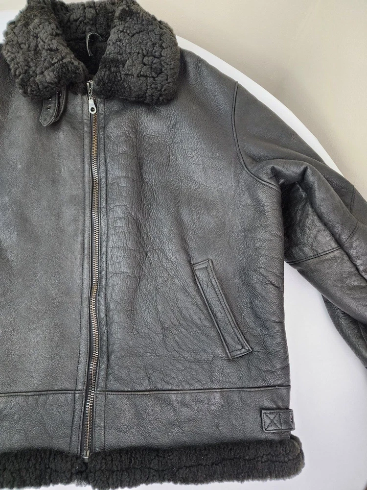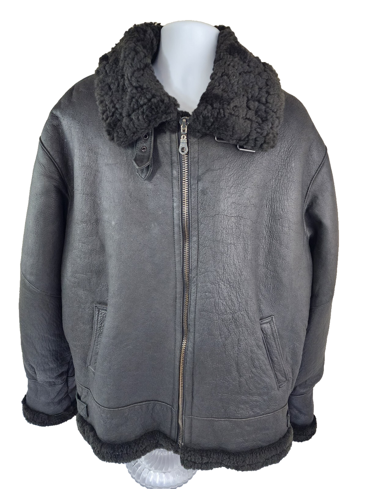 Available for sale is a very is a beautiful Heavy Men's RUNWAY USA Shearling B-3 style Leather Bomber Sheepskin USAF Jacket in size 2XL (check the below measurements). This beautiful genuine RUNWAY USA Leather Shearling bomber jacket is super Heavy Duty, made for the coldest climates and with super thick leather and sheepskin. It is in a beautiful black color with black sheepskin lining on the interior and is in very good shape with only minor wear on the exterior as shown in the photos. The wool sheepskin fur on the inside is super warm and exceptionally soft and the leather on the exterior is supple and of very high quality. Made in Uruguay by RUNWAY, this jacket is in very good shape for its age with no tears, cracks, stains, smells, or major flaws, and with very minor wear overall, mostly on the sleeves. The interior sheepskin wool lining in excellent shape with no odors or issues (one sleeve cuff is missing a tiny bit of fur) . The hood is also missing. This jacket weighs over 7 pounds and is one of the highest quality shearling bomber jackets I have seen. Please check the measurements below. Measurements: Shoulder: 23" Chest: 27" Length: 30" Sleeve: 28.5", can be rolled to 25.5" Payment: We Accept PayPal, and eBay Payments which accepts most debit & credit cards and linked bank accounts. Shipping: We ship within 24-48 hours and we generally use USPS Ground Advantage or USPS Priority Mail for most of our shipments. We ship to al 50 states and we also ship Internationally as well, using eBay's International shipping service. We also offer expedited International shipping for an additional cost as well.