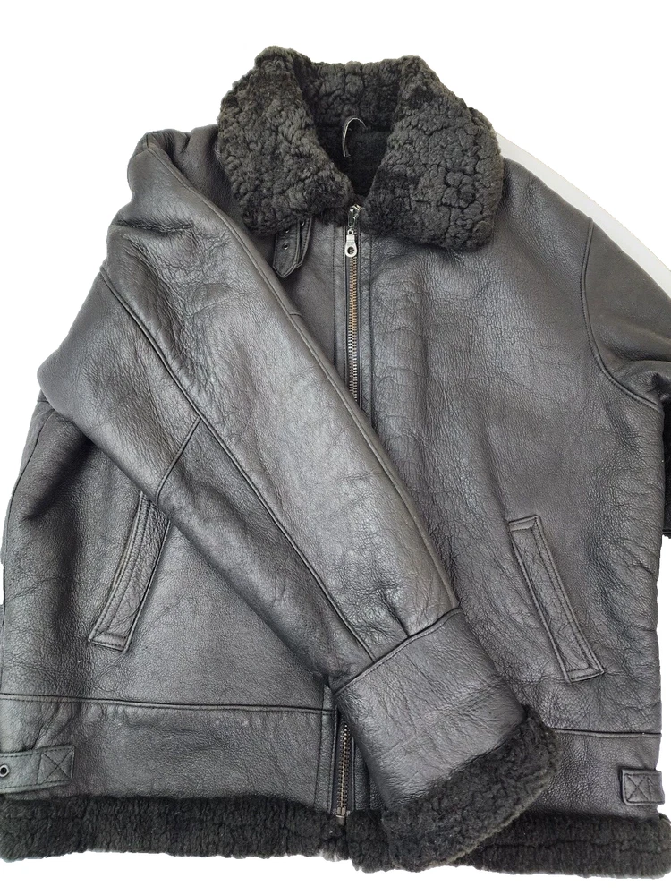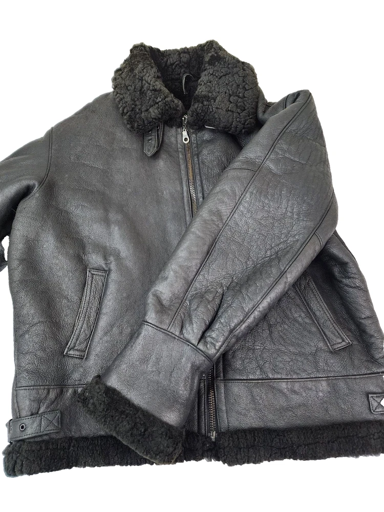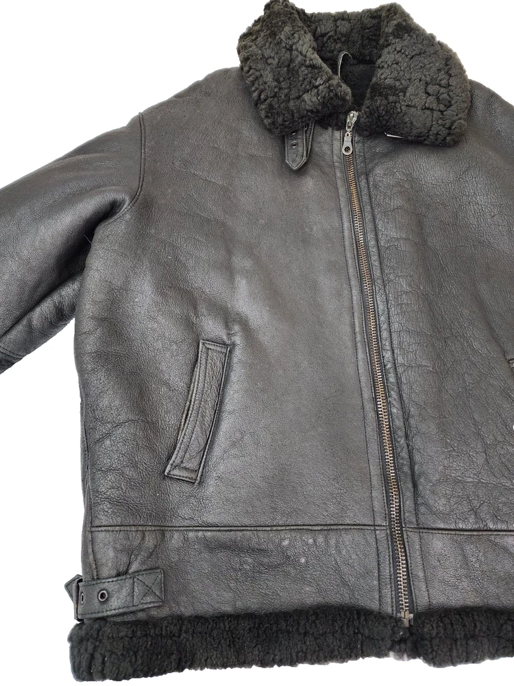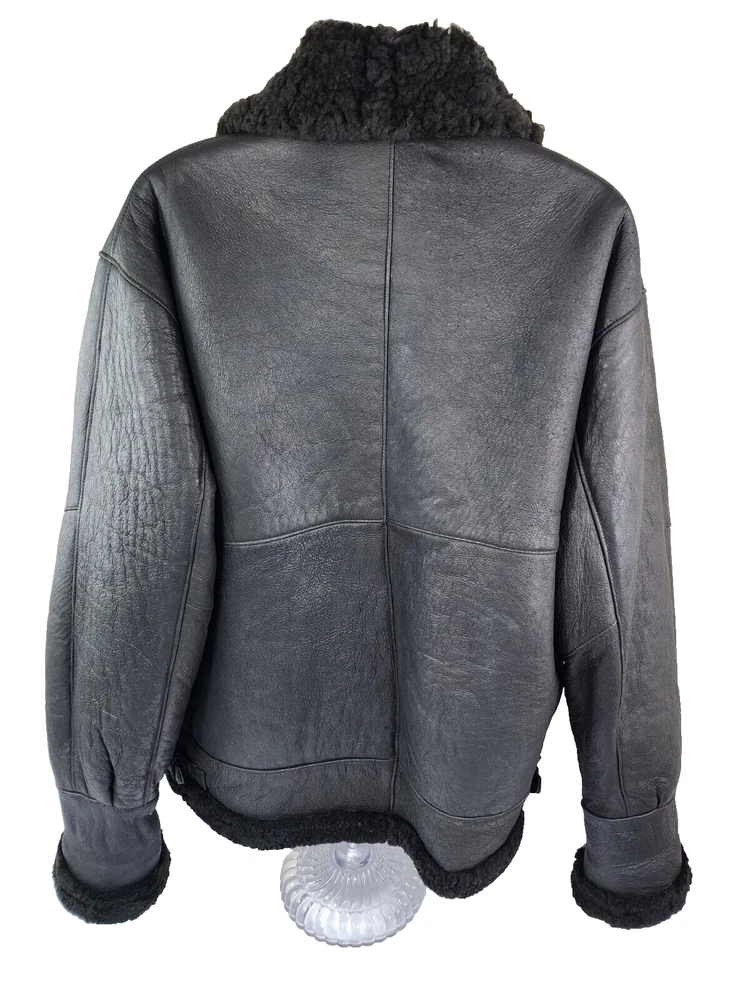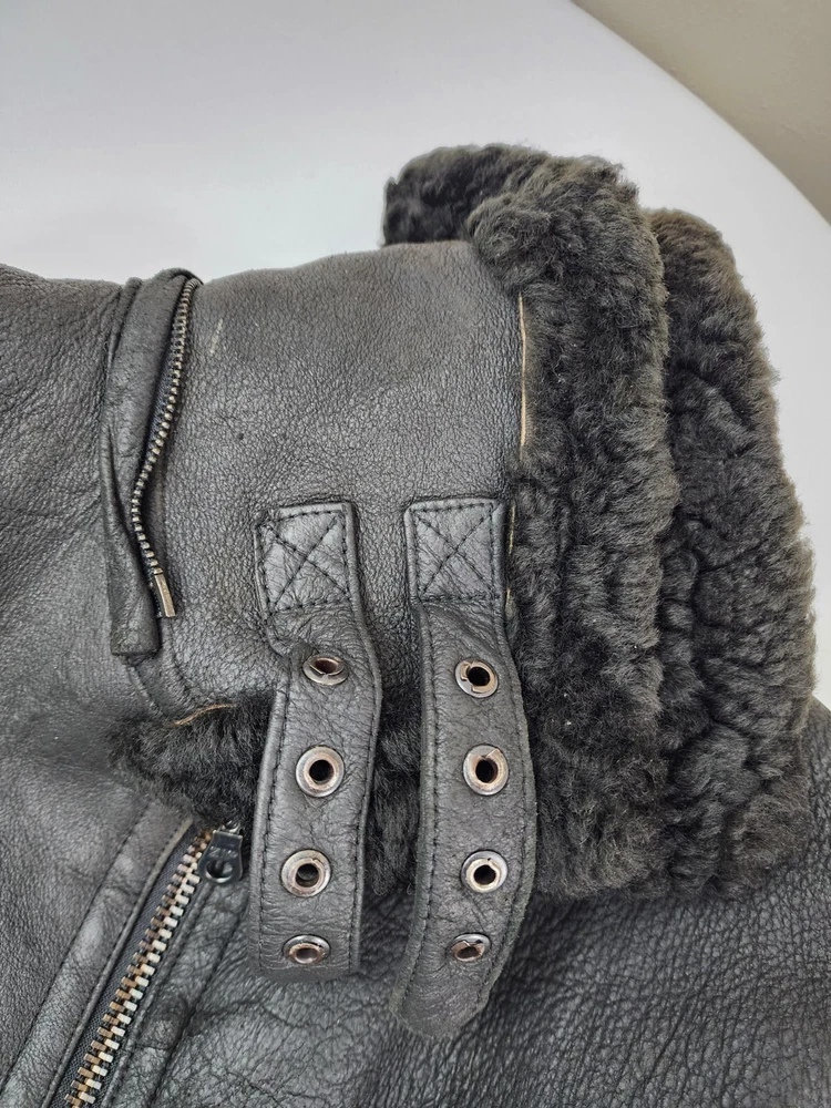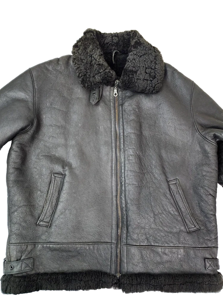 Available for sale is a very is a beautiful Heavy Men's RUNWAY USA Shearling B-3 style Leather Bomber Sheepskin USAF Jacket in size 2XL (check the below measurements). This beautiful genuine RUNWAY USA Leather Shearling bomber jacket is super Heavy Duty, made for the coldest climates and with super thick leather and sheepskin. It is in a beautiful black color with black sheepskin lining on the interior and is in very good shape with only minor wear on the exterior as shown in the photos. The wool sheepskin fur on the inside is super warm and exceptionally soft and the leather on the exterior is supple and of very high quality. Made in Uruguay by RUNWAY, this jacket is in very good shape for its age with no tears, cracks, stains, smells, or major flaws, and with very minor wear overall, mostly on the sleeves. The interior sheepskin wool lining in excellent shape with no odors or issues (one sleeve cuff is missing a tiny bit of fur) . The hood is also missing. This jacket weighs over 7 pounds and is one of the highest quality shearling bomber jackets I have seen. Please check the measurements below. Measurements: Shoulder: 23" Chest: 27" Length: 30" Sleeve: 28.5", can be rolled to 25.5" Payment: We Accept PayPal, and eBay Payments which accepts most debit & credit cards and linked bank accounts. Shipping: We ship within 24-48 hours and we generally use USPS Ground Advantage or USPS Priority Mail for most of our shipments. We ship to al 50 states and we also ship Internationally as well, using eBay's International shipping service. We also offer expedited International shipping for an additional cost as well.