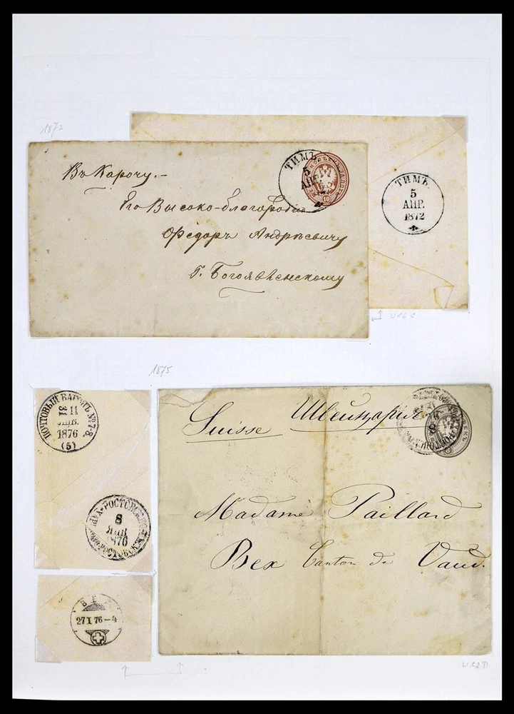 Established stampdealers on eBay since 1999! You are at one of the #1 eBay Sellers of the World since 1999. Enjoy our Excellent Trackrecord of 100% Positive 5 Ratings Feedback for years. Maarten Baas, eGlobals Stampdealers STORE HOME ABOUT US FEEDBACK ADD TO FAVOURITE SELLERS CONTACT US VIEW ALL ITEMS RUSSIA 1848-1945 Used Covers Field Post WWI WWII in 2 Albums Stamp Collection Scroll Down For 152 Images. Reference #39308. No Images? Contact us! Beautiful, almost completely canceled stamp collection Russia 1848-1945, including very many covers, cards, postal stationery, also a lot of field post from WWI and WWII, mail from foreign offices in China, Levant, etc. in 2 Victoria albums. eGlobals-Stamps Reference number #39308 Contact us when you prefer an external image link. Scroll down for 152 images. VALUABLE COLLECTION FREE SHIPPING WORLDWIDE ***** Check all 152 PHOTOS for EXACT content, what you see is what you get. The above image with the green background is the overview image. RUSSIA 1848-1945 Used Covers Field Post WWI WWII in 2 Albums Stamp Collection REFERENCE NR. #39308 Check Our Excellent 100% Positive 5 Star Feedback Ratings... For Years!! Some General Frequently Used Descriptions of Stamp Conditions: Mint hinged (MH) - Unused stamp but has been previously hinged. Remains of the hinge or gum disturbance are visible. Mounted mint (MM) - Same as Mint hinged. Mint no gum (MNG) - Stamp appears to be unused but has no gum. It might have been used but not cancelled, or have been issued without gum. Unmounted mint (UM) - Stamp is unused and has never been mounted. Mint never hinged (MNH) - Same as Unmounted Mint but with an assertion that the stamp is not a formerly mounted stamp. STORE HOME ABOUT US FEEDBACK ADD TO FAVOURITE SELLERS CONTACT US VIEW ALL ITEMS Worldwide Shipping SHIPPING We combine lots so you save on shipping. Shipments are sent by UPS only to street addresses (We are sorry we cannot ship to PO BOX addresses). SHIPPING WEIGHT can be higher due to protective packaging. International Buyers: Please Note: Import duties, taxes, and charges are not included in the item price or shipping cost. These charges are the buyer's responsibility. Please check with your country's customs office to determine what these additional costs will be prior to bidding or buying. Excellent Customer Satisfaction We strive for 5 stars on all sales! We strive for 5 stars on all sales. If we do not earn 5 stars, please contact us, so we can make it right ! Proud IPDA Member Stamp Dealers On The Web You Can Trust!