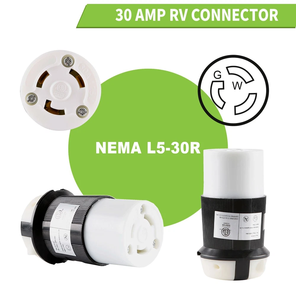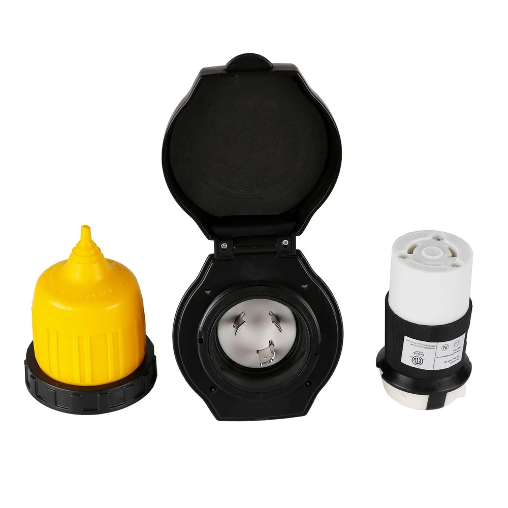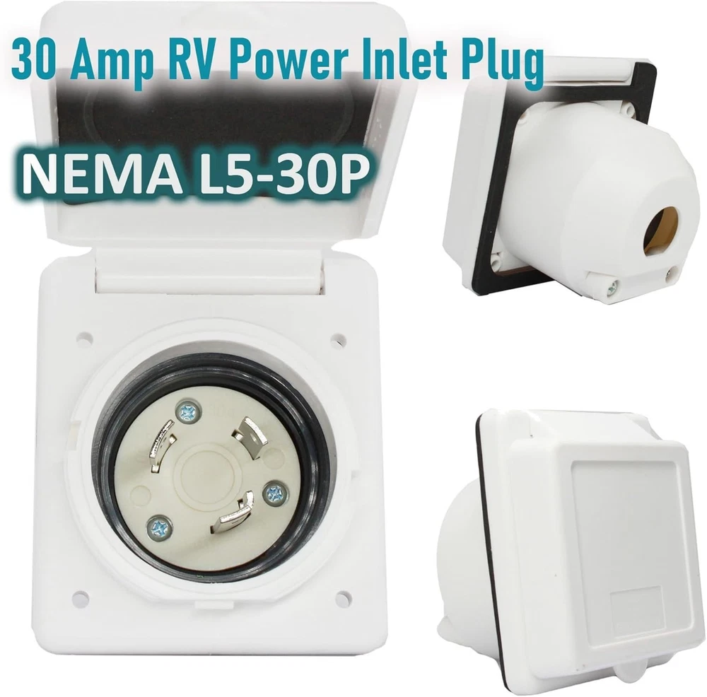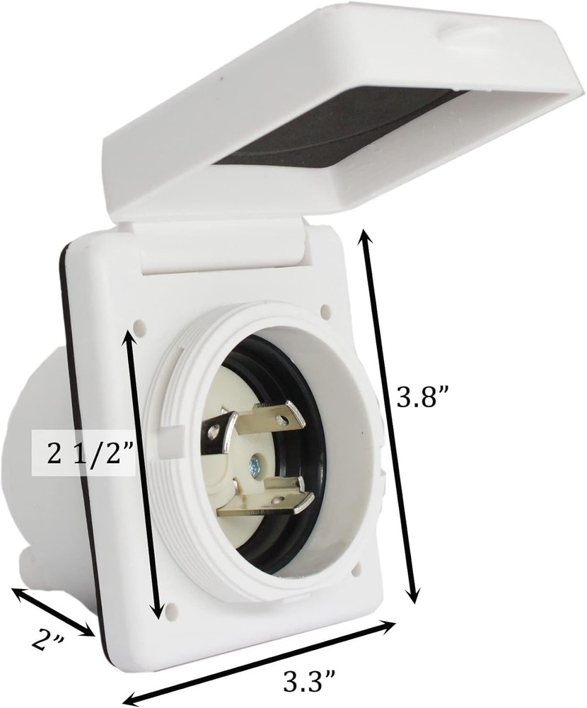 Features: Quanity: One power inlet receptacle ,One female twist locking connector, One weather-proof boot. Amps: 30 amp Voltage: 125V AC Hole Saw :2-7/8" , 30amp inlet requires the use of 8awg or 10awg wire, 3-wire :Black -load(125 volt) ,white - neutral, green - -equipment ground, Works great and was easy to install. RV Inlet constructed from corrosion-resistant plastic and stainless steel materials. Cover constructed with a bright yellow rubber body and Black heavy-duty plastic ring for extra longevity with no leaks. Specification: Item Weight:15.2 ounces Package Dimensions:6.4 x 5.6 x 3.3 inches Notice: In case the item is defective, please inform us within 15 days of receipt, we will arrange reship or refund. Buyers have to pay for the return cost and we will pay the cost for resend. If you are unsatisfied with our item or service, please contact us before leaving any feedback. We are committed to resolve all issues in a friendly and satisfactory manner. We always reply to messages within 2 business days (off-duty at weekend).If you do not get a response from us, then please check your junk or spam mailbox.