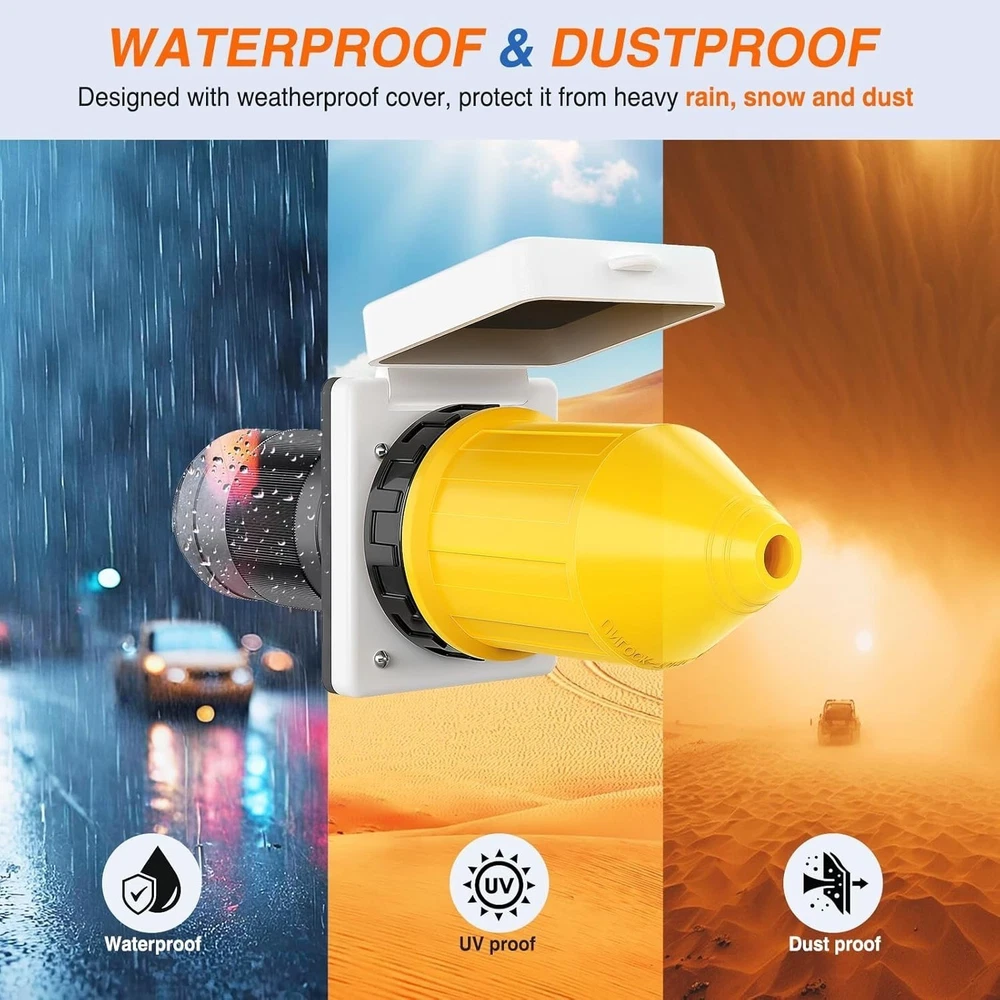 Features: Includes 50 amp RV power inlet receptacle ,female twist locking connector, weather-proof boot with locking ring.Rating: 125V AC 50A; Withstand Voltage. The RV power inlet box is constructed from a high quality PVC. The cover is made of corrosion resistant materials and perfect for water-proof. Fits for RV,Trailer, Boat, Caravan, Camper, Truck ,Yacht and so on.For indoor or outdoor use with specific transfer switches, manual transfer panels and generator-ready load center. With color coded wire installation,easy to install. W=white wire G=green wire X=red wire Y=black wire. Specification: Item Weight: 15.2 ounces Package Dimensions: 7.1 x 5 x 3 inches Material: Nylon, Metal P ackage List: 1 x50A Power Inlet 1 x50A Female Twist Locking Connector 1 x 50A Weather-proof Boot with Locking Ring Notice: In case the item is defective, please inform us within 15 days of receipt, we will arrange reship or refund. Buyers have to pay for the return cost and we will pay the cost for resend. If you are unsatisfied with our item or service, please contact us before leaving any feedback. We are committed to resolve all issues in a friendly and satisfactory manner. We always reply to messages within 2 business days (off-duty at weekend).If you do not get a response from us, then please check your junk or spam mailbox.