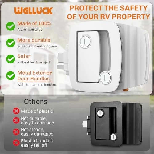 Return Policy Fast Delivery Trusted seller RV Entry Door Lock with Paddle Deadbolt, Camper Door Latch Handle, RV Door Lock Replacement Kit Secure for Camper Horse Travel Trailer Cargo Hauler (Aluminum Alloy White) Product Description RV Entry Door Lock w/Paddle Deadbolt, 100% Metal Camper Door Latch Handle, Zinc Alloy RV Door Lock Replacement Kit for Camper Horse Travel Trailer Cargo Hauler, Polar White, Not Key Alike Shipping Returns Payment Shipping Shipping is FREE to all addresses other than APO/PO boxes in the lower 48 states. All our stock ships from US-based warehouses. Shipped via USPS or UPS (depending on location and package weight) Unless stated otherwise, all orders will ship within 24-72 hours of your payment being processed. Check our feedback to see the great reviews of FAST shipping we offer. Returns Seller does not accept returns Payment We currently accept payment via eBay managed payments only. Once payment is cleared, we will dispatch your shipment within 1-3 business days. Please refer to the "Shipping" tab for more information regarding shipping speed to your destination.