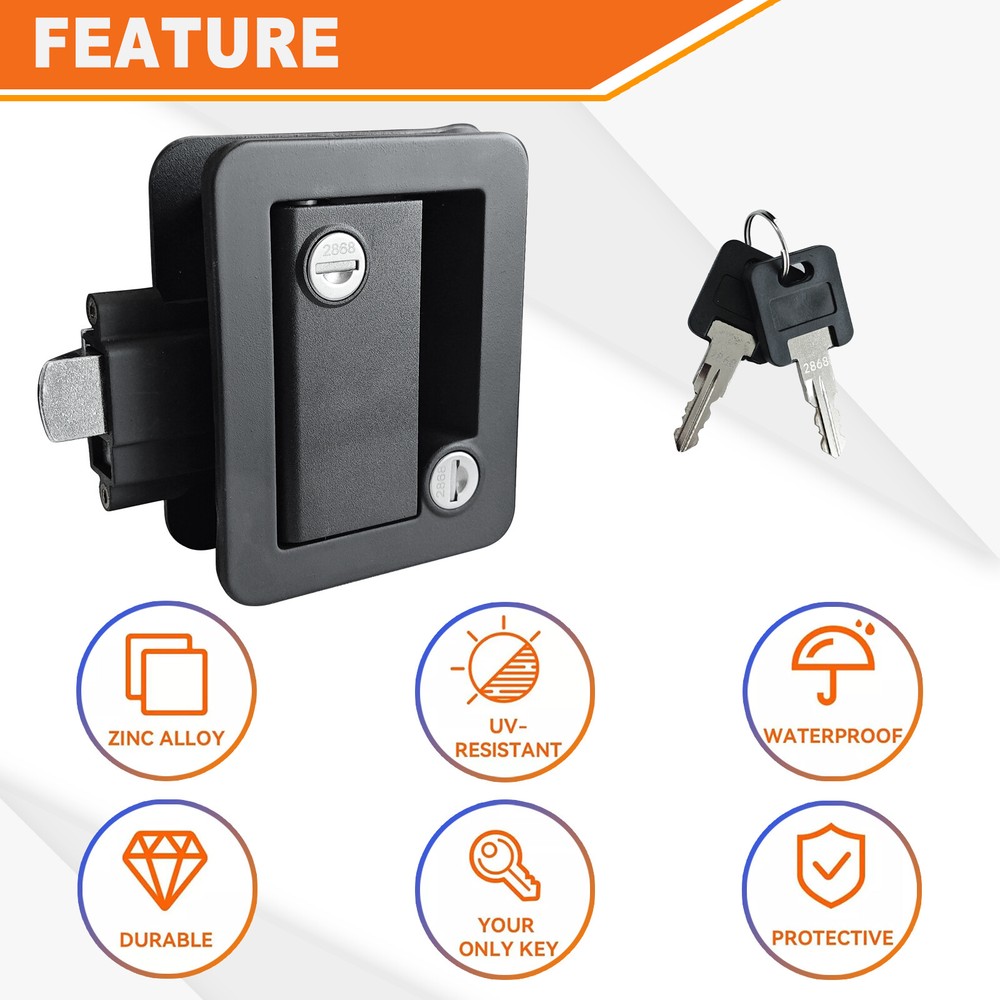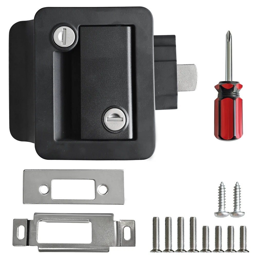 This RV paddle door lock is a game-changer for security and convenience! The sturdy black design blends seamlessly with my camper, and installation was a breeze thanks to the included guide and screws. The deadbolt adds serious peace of mind while traveling, and the smooth paddle handle makes opening/closing effortless. After several road trips, it still functions like new—no jamming or sticking. Perfect upgrade for any RV or trailer owner wanting reliable protection without sacrificing style. Highly recommend for durability and easy operation!